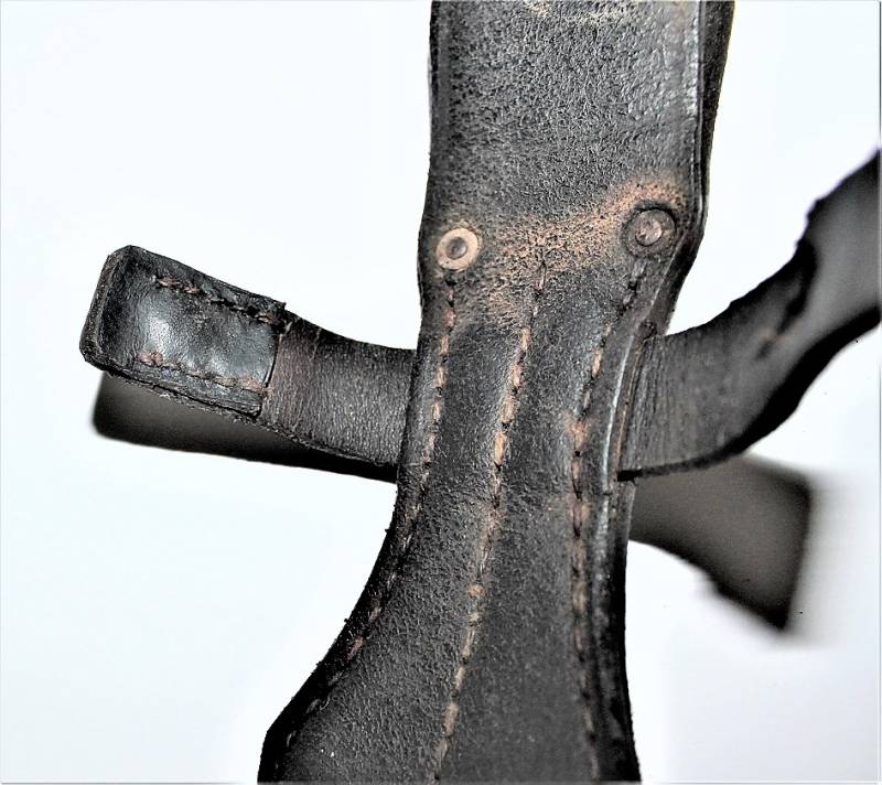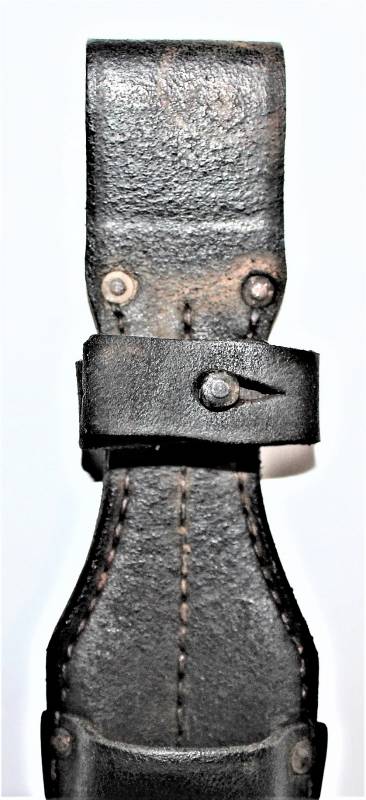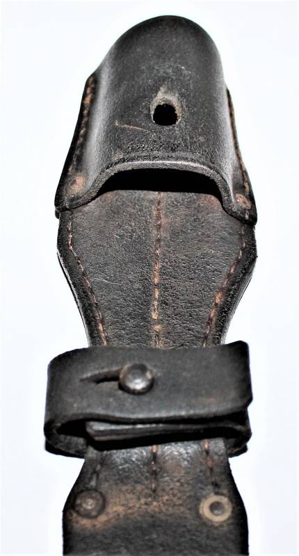 Dragona per baionetta fucile Mauser K98 in buone condizioni, con patina del tempo e dellŽuso, pelle e cuciture sane, marcata su retro con RBN n.. Originale 100% WWII periodo.