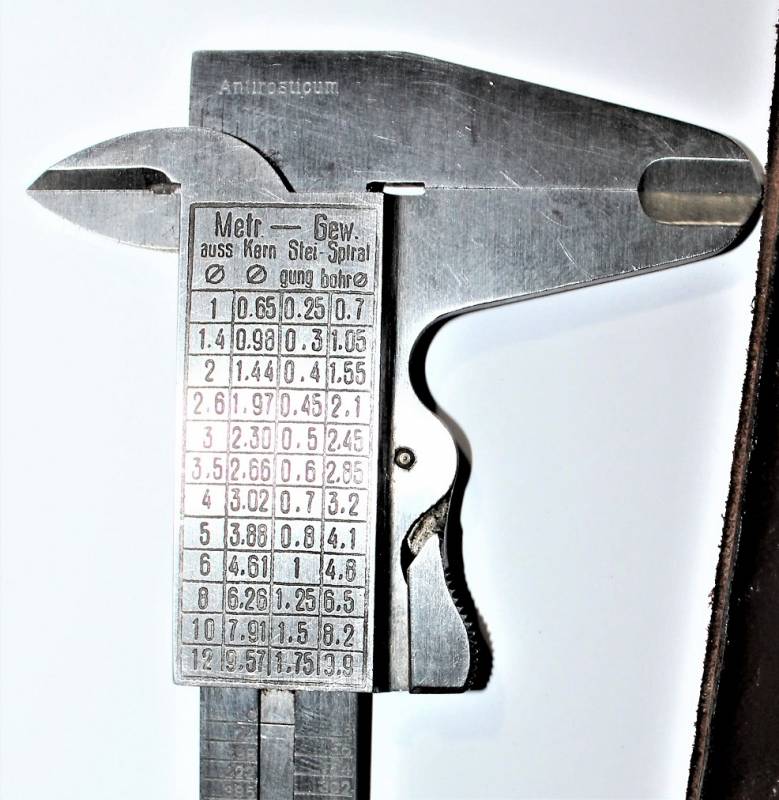 Perfetto calibro della mauser in acciaio in condizioni pari al nuovo, completo della sua custodia in pelle marcata con logo mauser. Originale 100% WWII periodo.