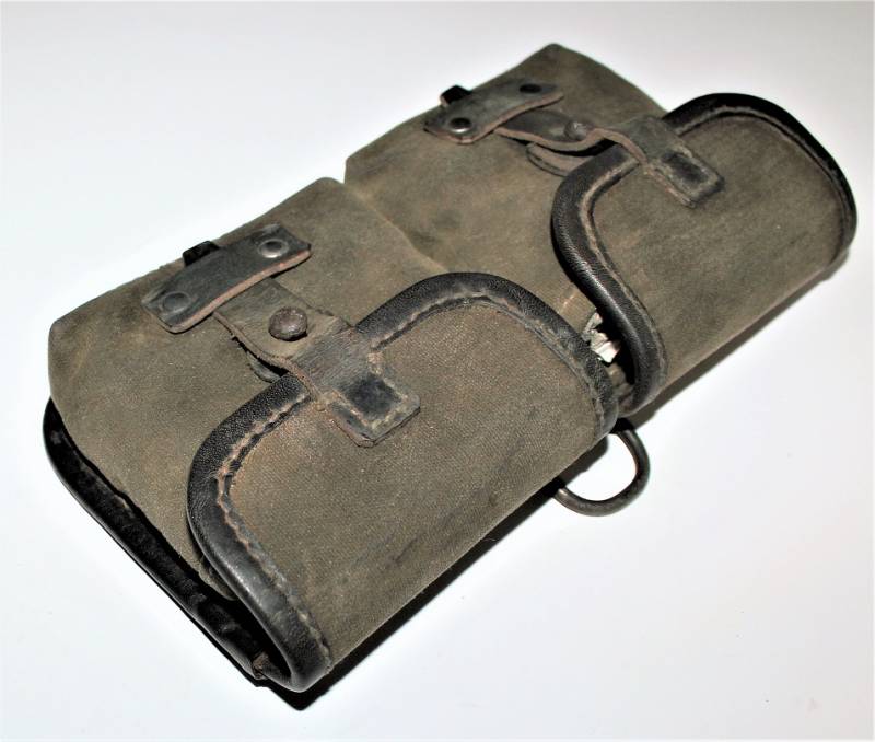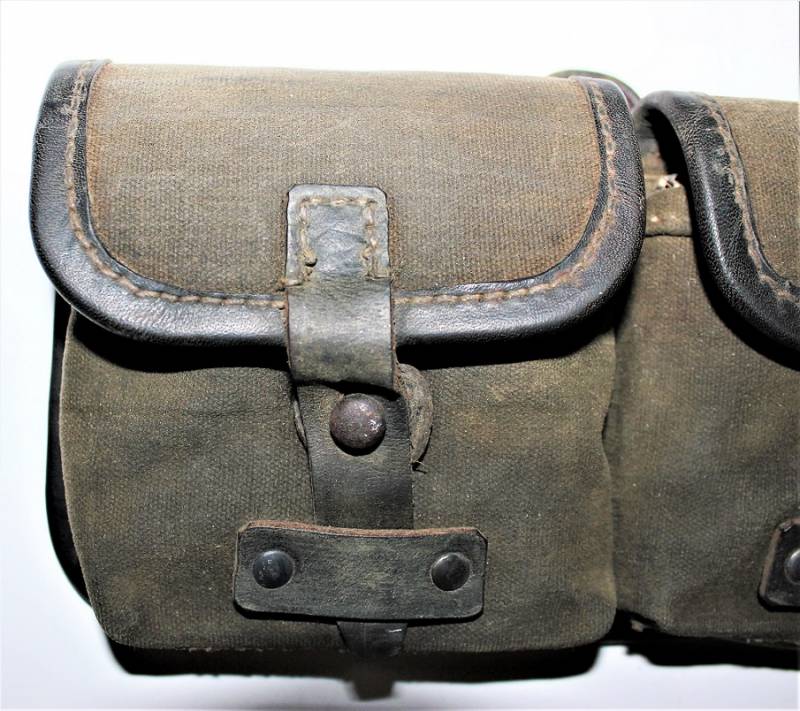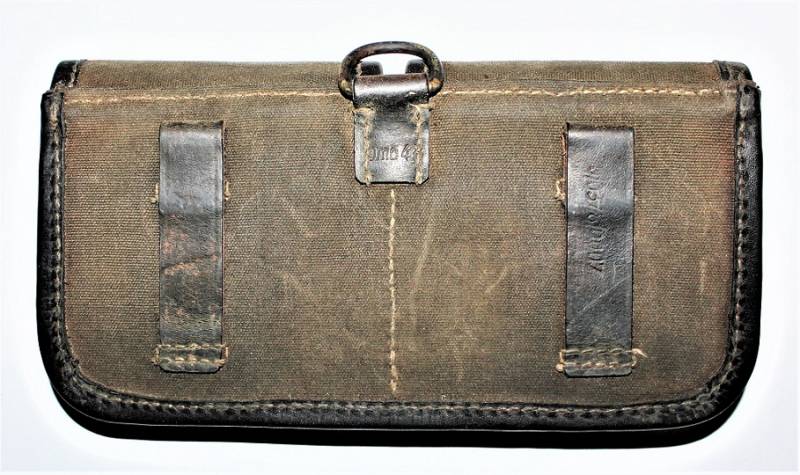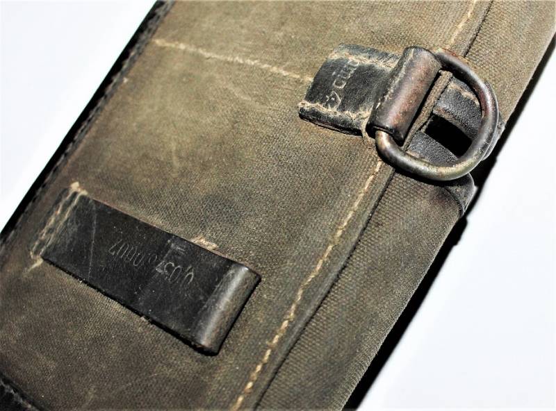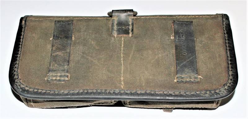 Porta caricatori modello tela e pelle per fucile semi automatico K43 G43 in buone condizioni, pelle e tela non lesionata, cuciture perfette, non restaurati o riparati, con patina del tempo e dellŽuso, marcati con codice fabbricante, data 1944 e RBN n... Originale 100% WWII periodo.