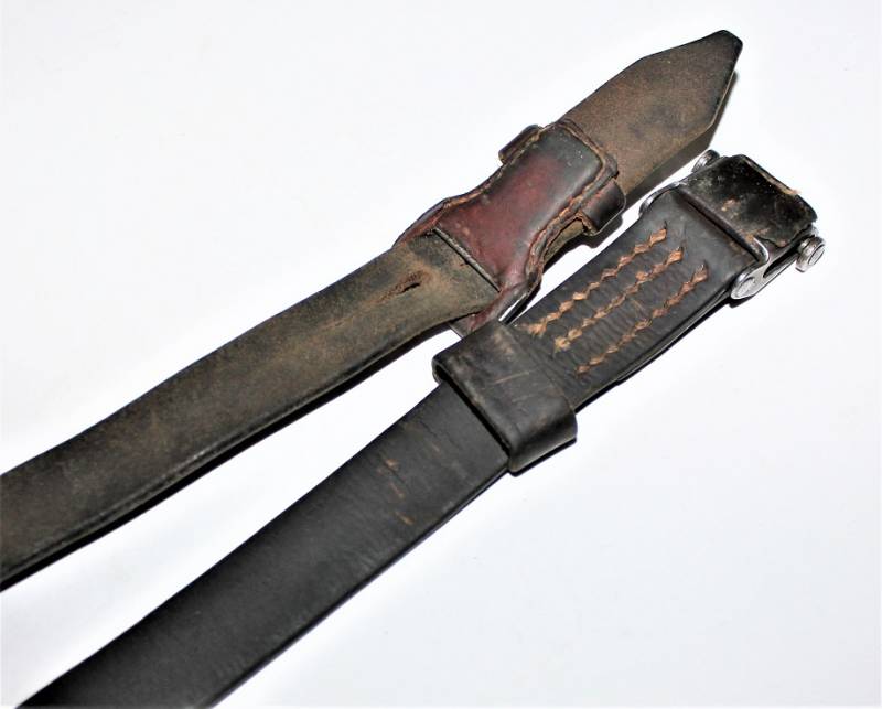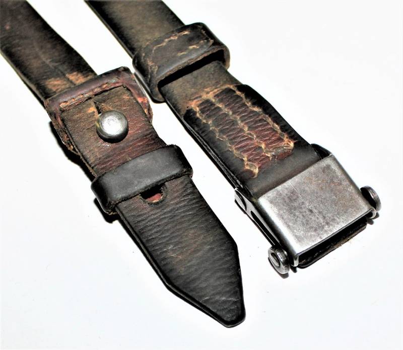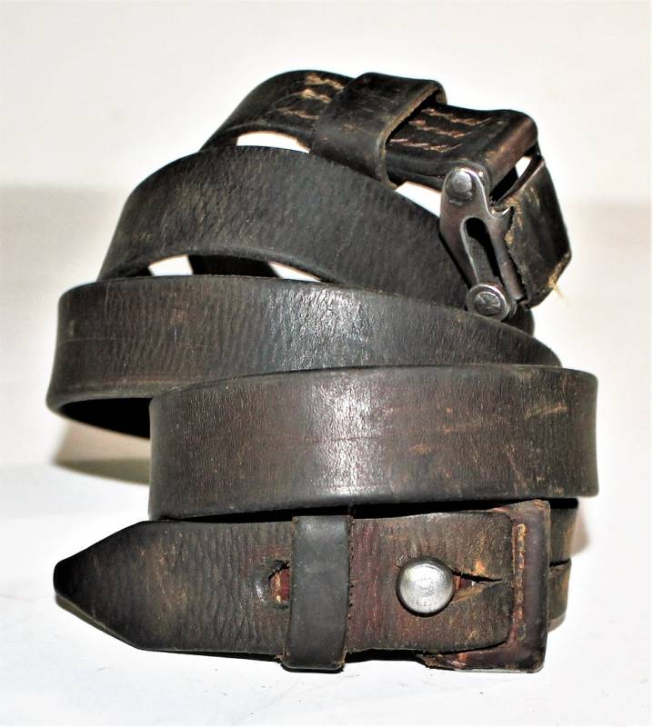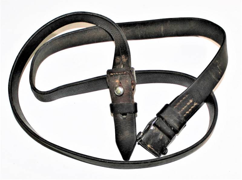 Cinghia di trasporto per fucile Mauser K98 in buone condizioni, completa in ogni sua parte, non restaurata o riparata, pelle ancora morbida e non lesionata, cuciture sane, solo con patina del tempo e dellŽuso. Originale 100% WWII periodo.