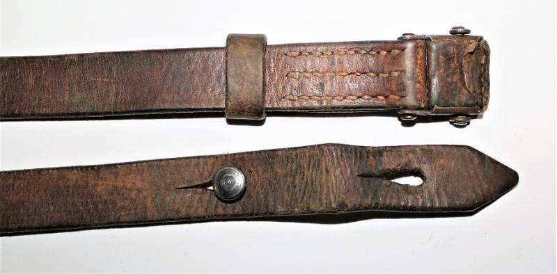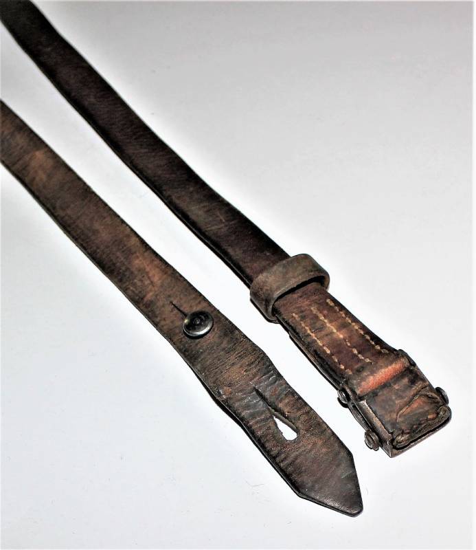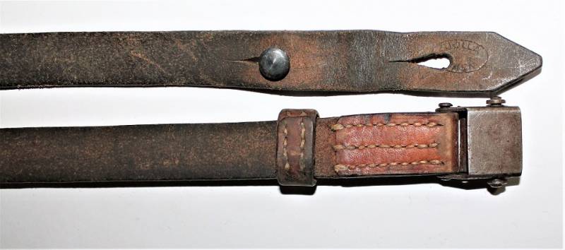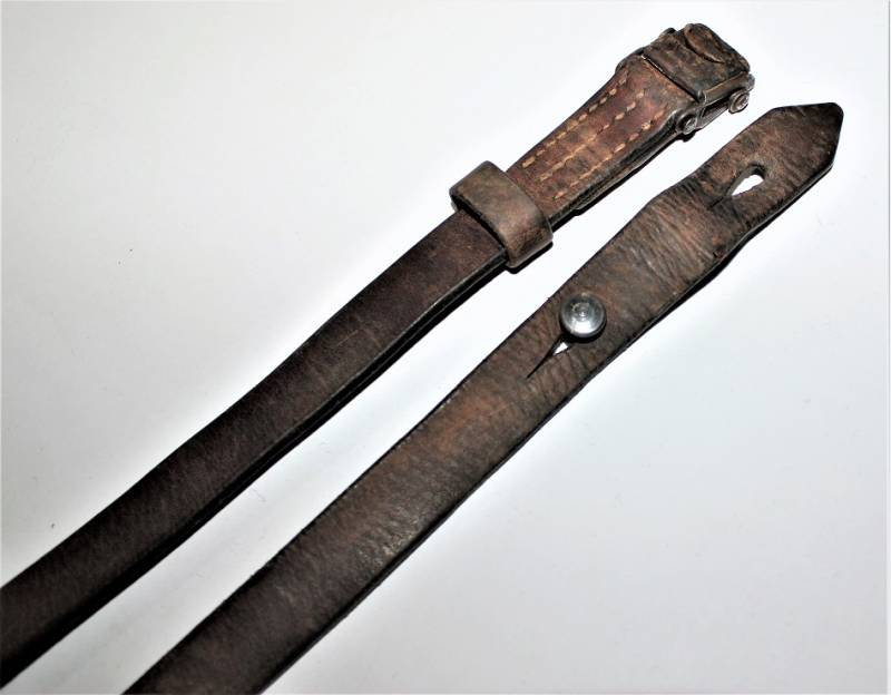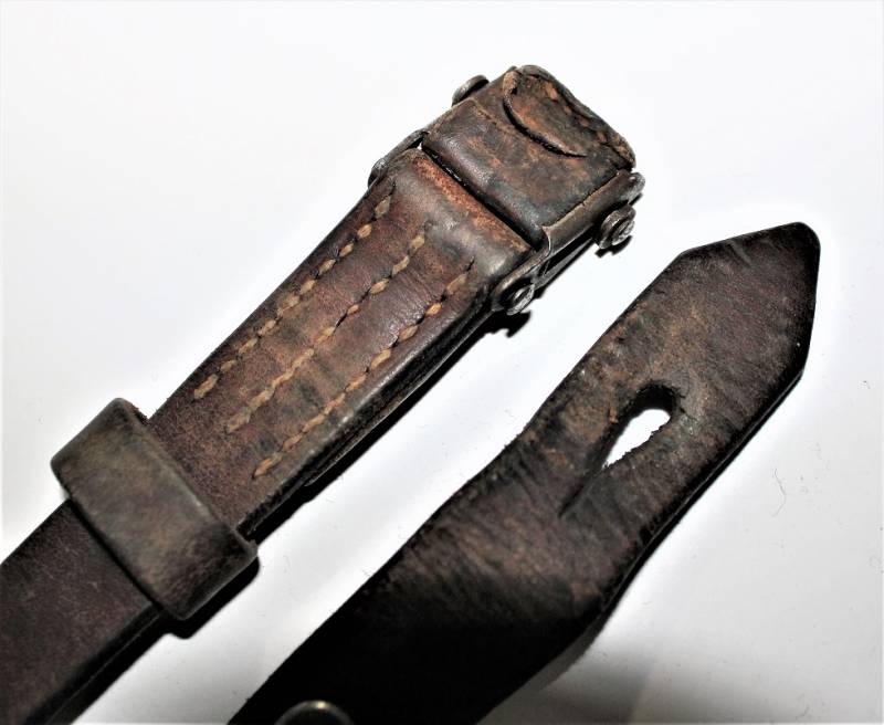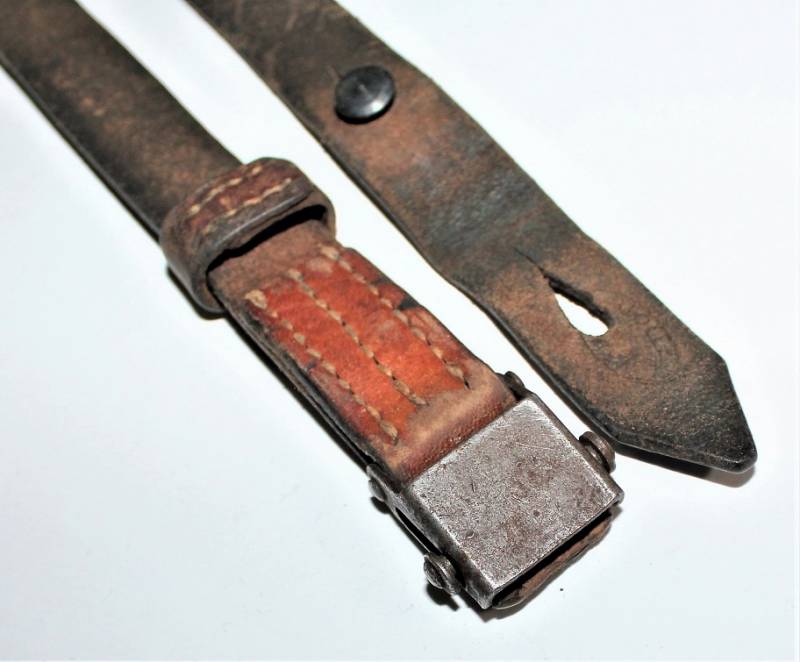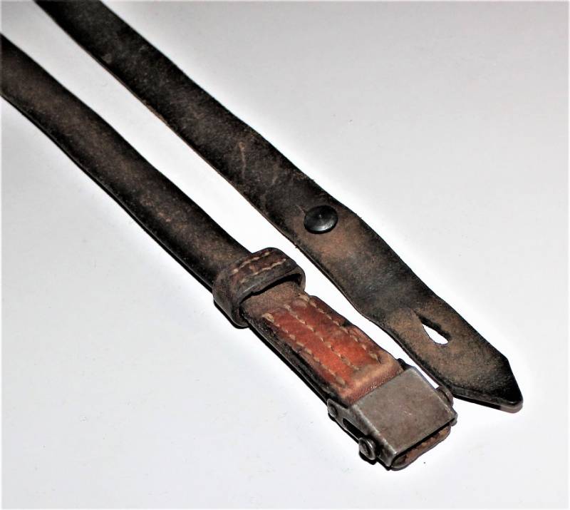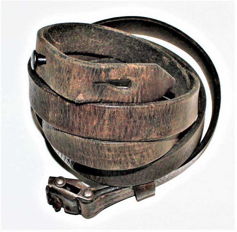 Cinghia di trasporto per pistola mitragliatrice MP38-40 condizioni belle, non troppo usata, ancora visibile la colorazione marrone e parte della zigrinatura, completa in ogni sua parte, non restaurata o riparata, solo con patina del tempo e dellŽuso, pelle ancora morbida e non lesionata, cuciture perfette, marcata con fabbricante "STOLLA VIENNA". Originale 100% WWII periodo.