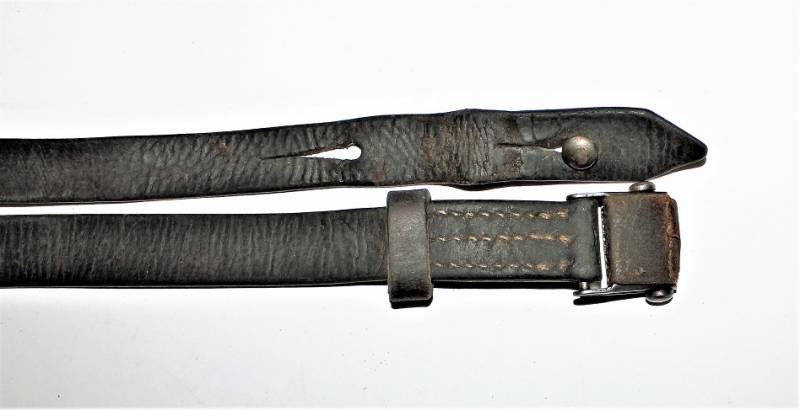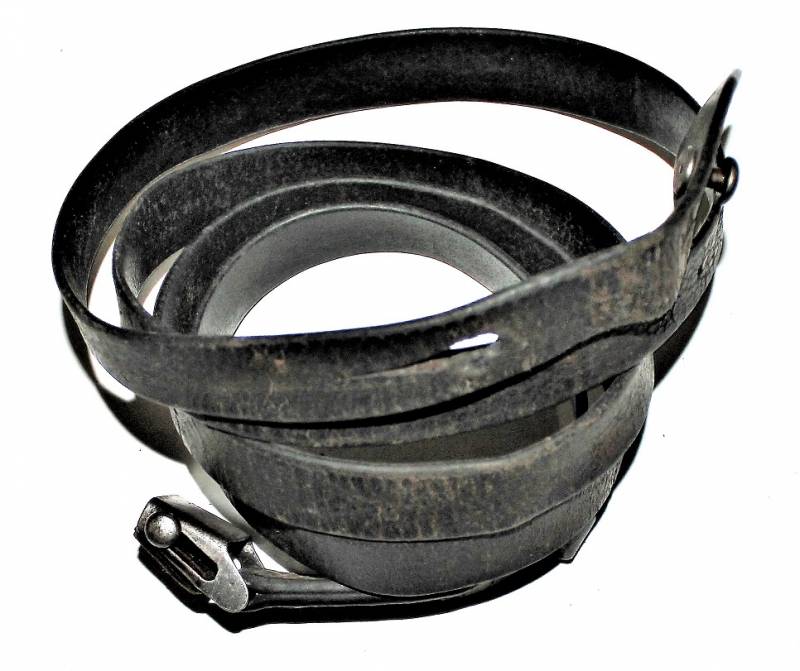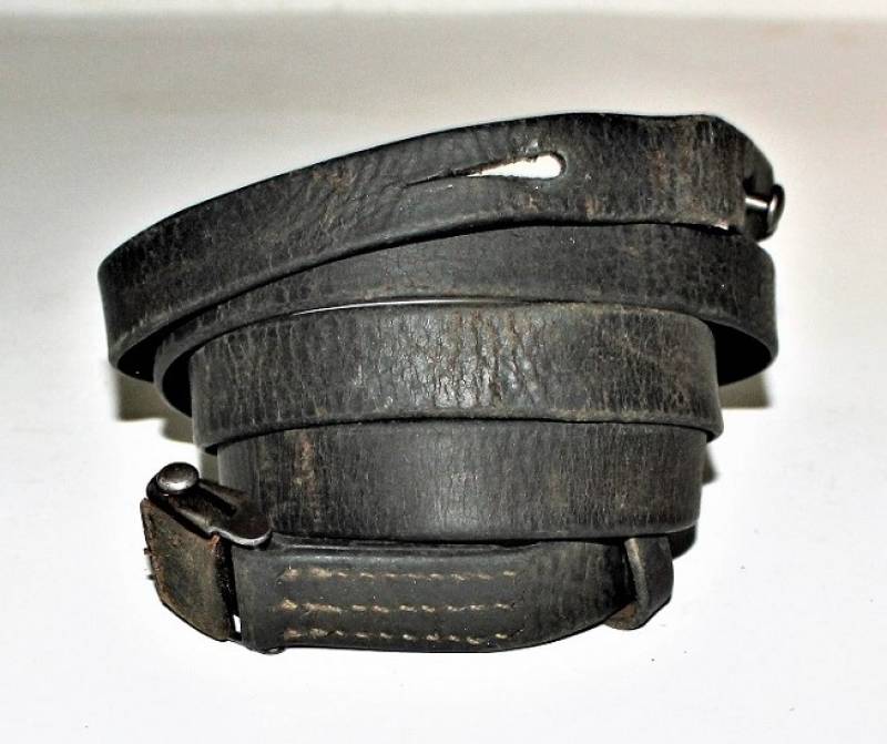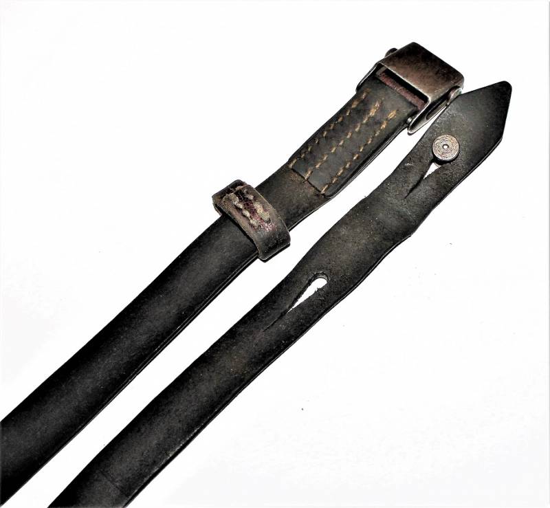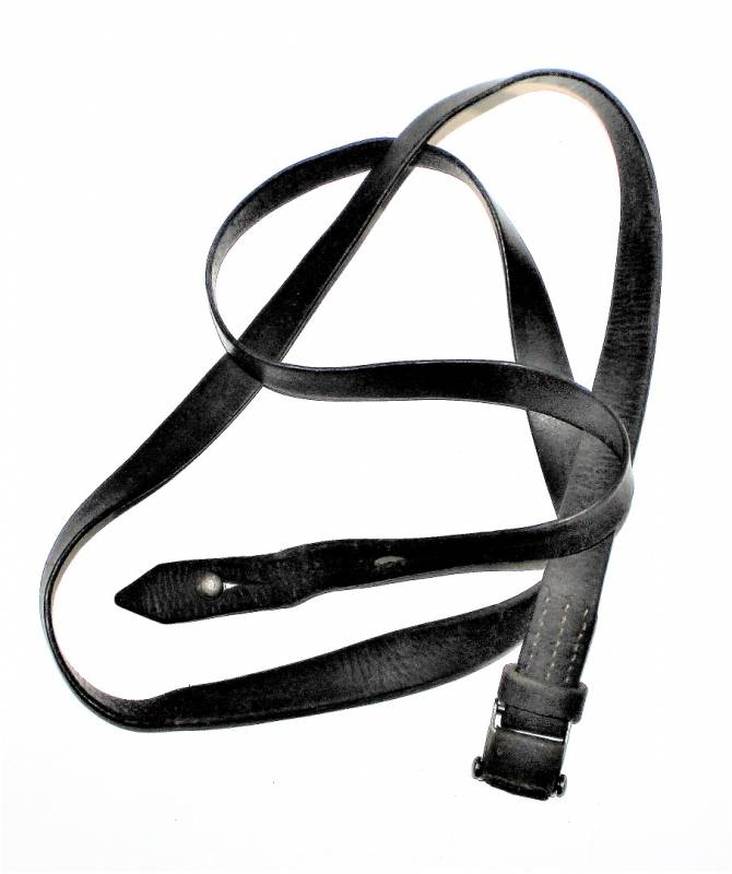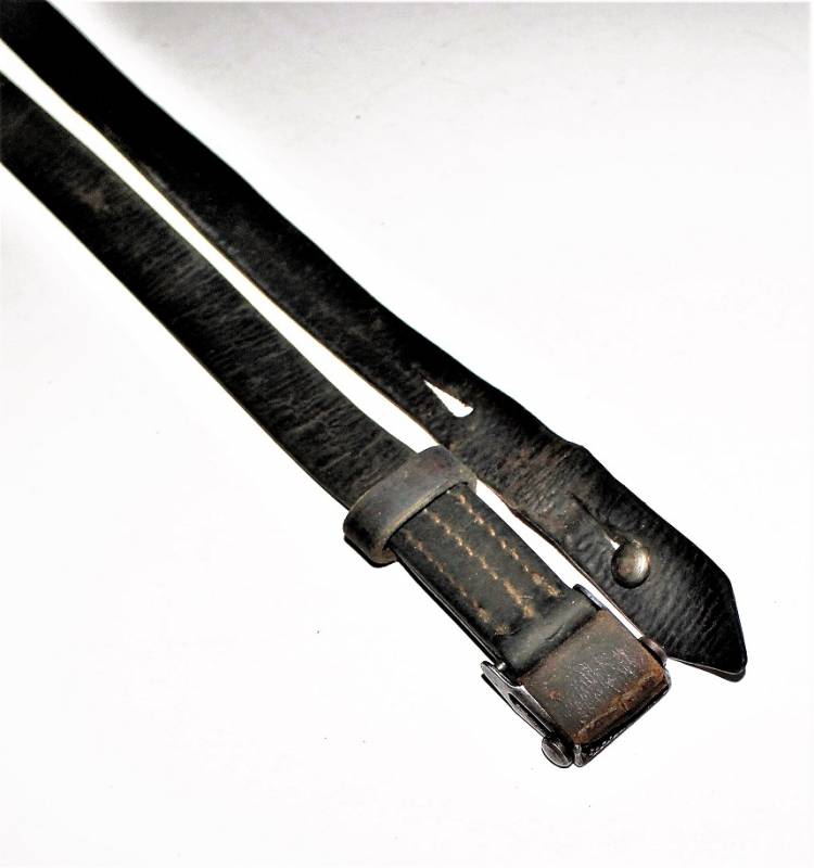 Cinghia di trasporto per pistola mitragliatrice MP38-40 condizioni buone, completa in ogni sua parte, non restaurata o riparata, solo con patina del tempo e dellŽuso, pelle ancora morbida e non lesionata con superficiali screpolature, cuciture perfette. Fibbia marcata con iniziali fabbricante "LeF". Originale 100% WWII periodo.
