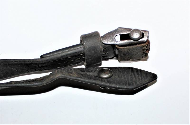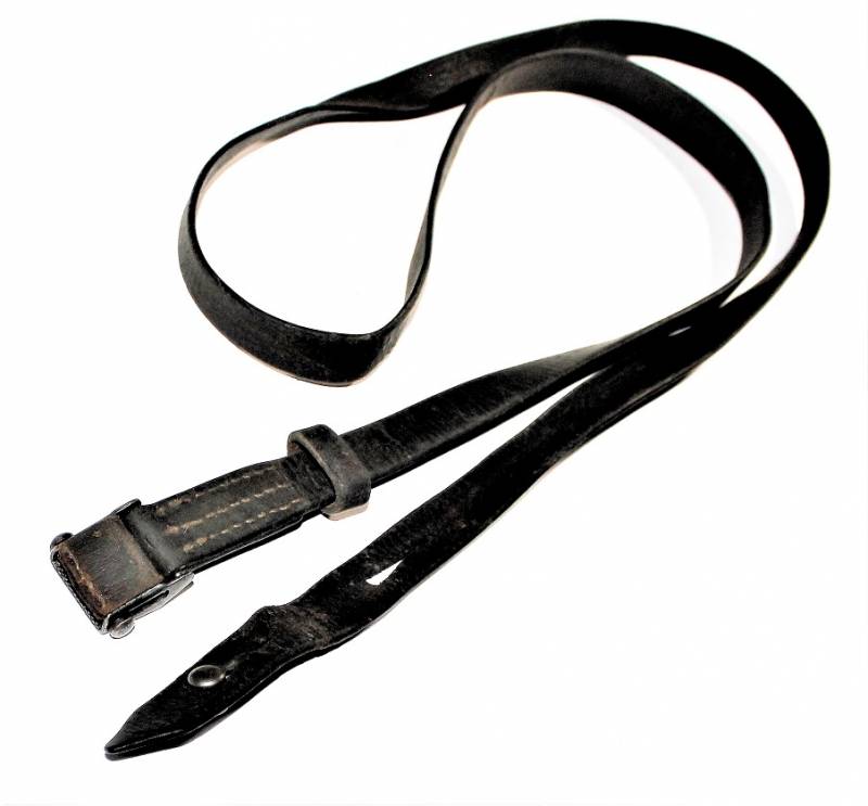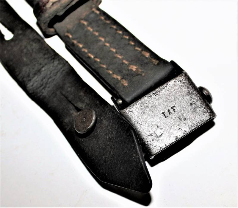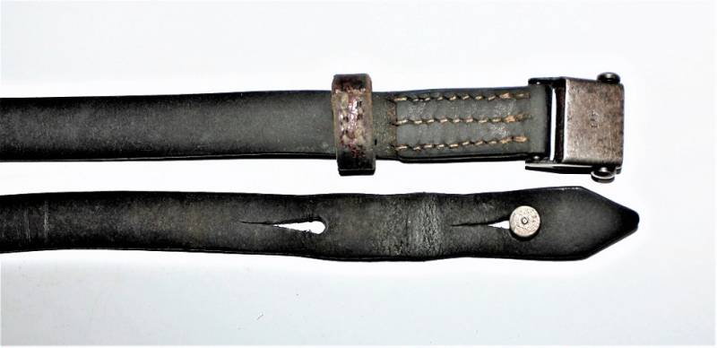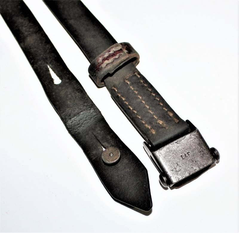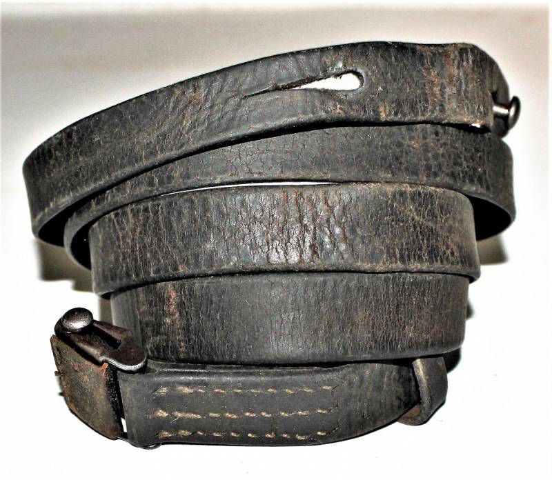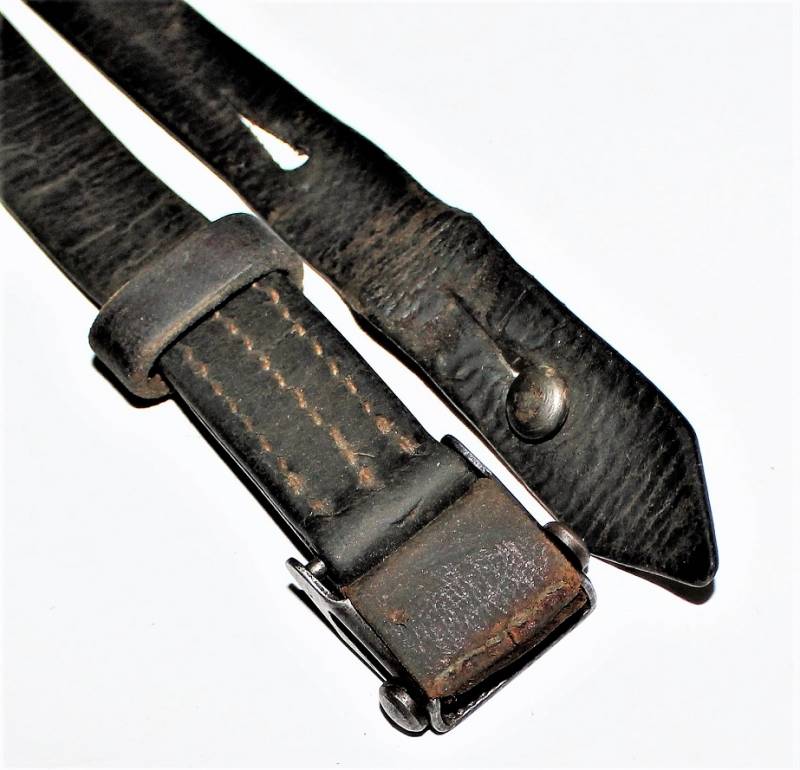 Cinghia di trasporto per pistola mitragliatrice MP38-40 condizioni buone, completa in ogni sua parte, non restaurata o riparata, solo con patina del tempo e dellŽuso, pelle ancora morbida e non lesionata con superficiali screpolature, cuciture perfette. Fibbia marcata con iniziali fabbricante "LeF". Originale 100% WWII periodo.
