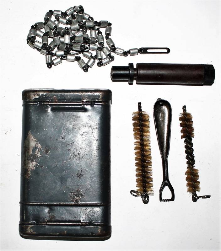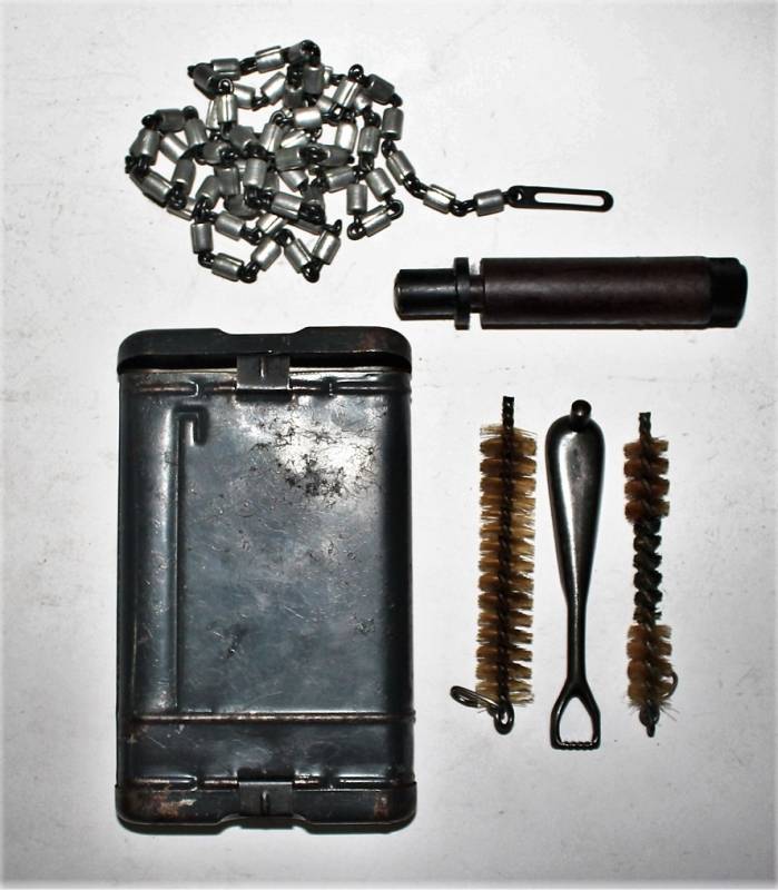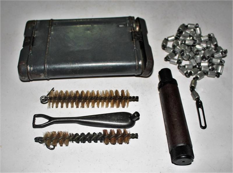 Kit pulizia per fucile K98 mod. RG34 nato in colore blugrau, condizioni buone, con patina del tempo e dellŽuso, completo di tutti gli accessori, marcato con fabbricante, data 1941 e waffenamt. Originale 100% WWII periodo.
