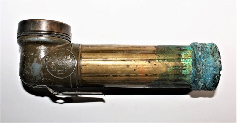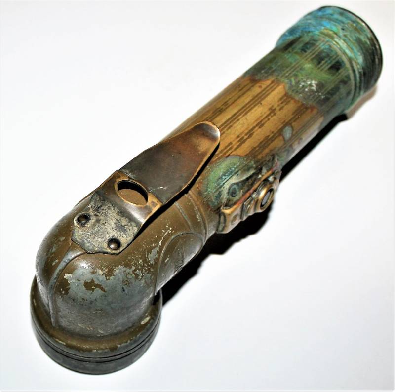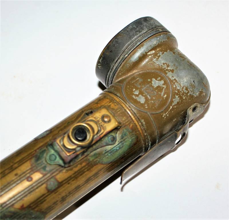 Rara torcia US ARMY modello TL-122-A in discrete condizioni, nata in ottone, non restaurata o riparata, solo con patina del tempo e dellŽuso, sulla parte inferire le batterie hanno rilasciato acido.