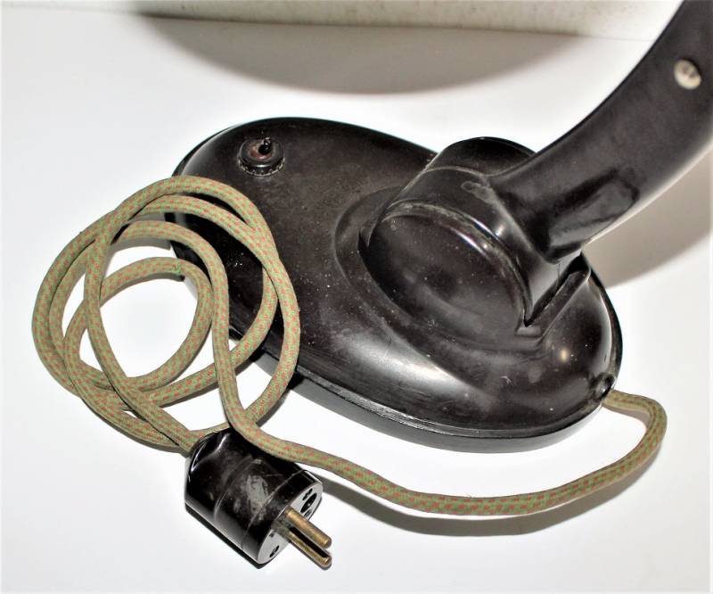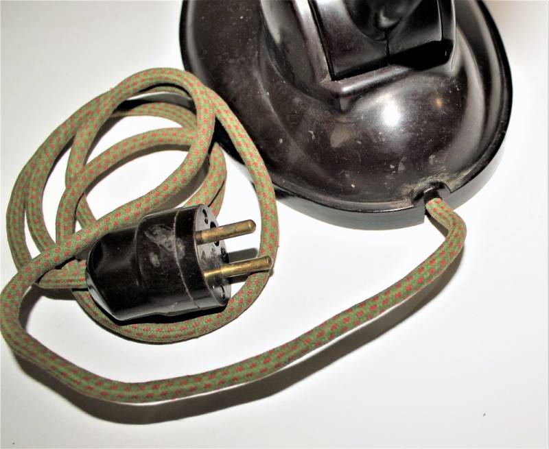 Bella lampada da ufficio in bakelite rossa in buone condizioni, completa in ogni sua parte, bakelite perfetta non lesionata, perfettamente funzionante, con cavetto e spina originali, solo leggera patina del tempo, marcata con numeri di codici.