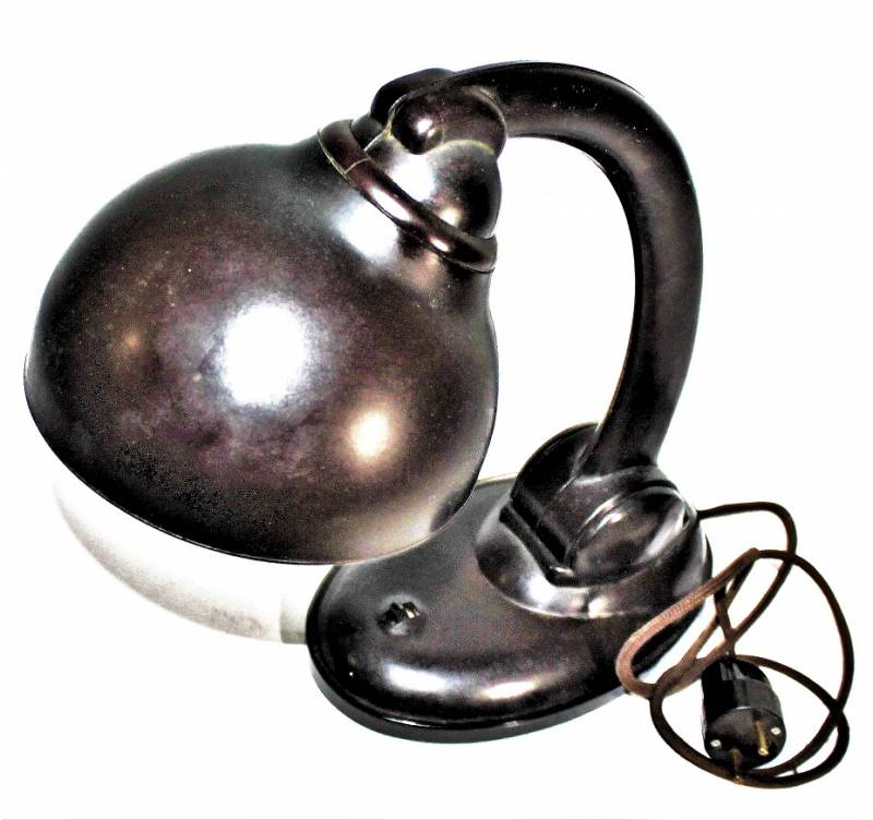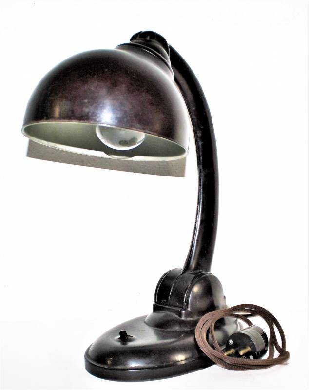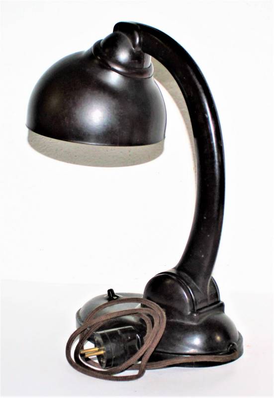 Bella lampada da ufficio SS-WH-LW in bakelite rossa-marrone in buone condizioni, completa in ogni sua parte, bakelite perfetta non lesionata, perfettamente funzionante, con cavetto e spina originali, solo leggera patina del tempo, non marcata.