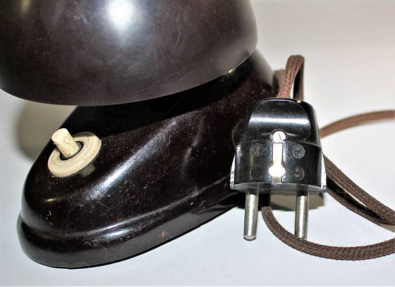 Bella lampada da ufficio SS-WH-LW in bakelite rossa-marrone in ottime condizioni, quasi pari al nuovo, completa in ogni sua parte, bakelite perfetta non lesionata, perfettamente funzionante, solo leggerissima patina del tempo, marcata con marchi del fabbricante, voltaggio e numero di serie, completa del suo cavetto e della spina originale.