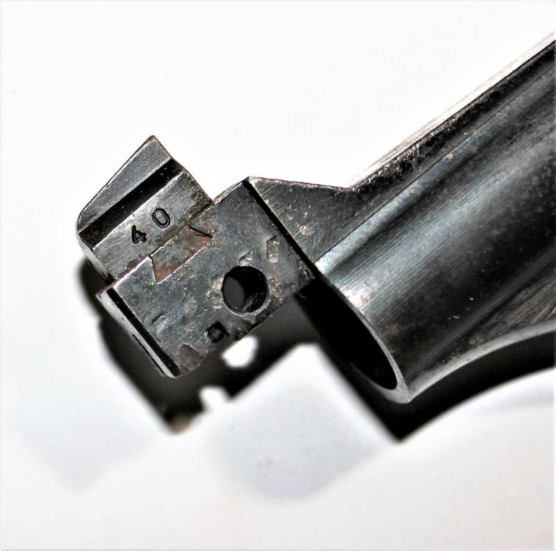 Supporto mirino per pistola mitragliatrice MP38 MP40, condizioni buone ma usato, con patina del tempo e leggeri segni di ruggine.