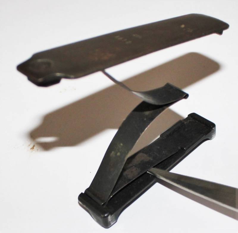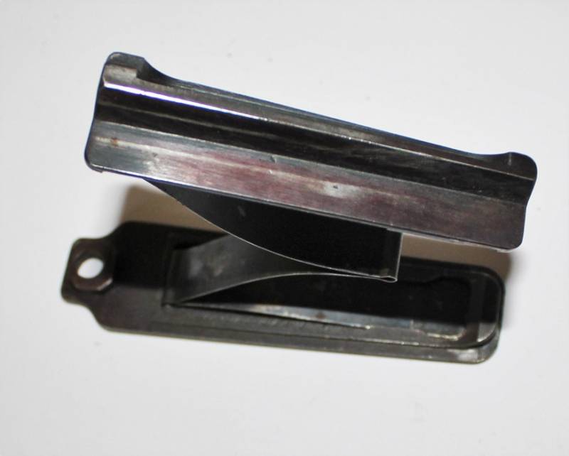 Fondello di chiusura per serbatoio munizioni fucile Mauser K98, buone condizioni con segni di usura e del tempo, completo di molla e di elevatore. Marcato con numero di matricola e waffenamt aquila 655. Originale 100% WWII periodo.