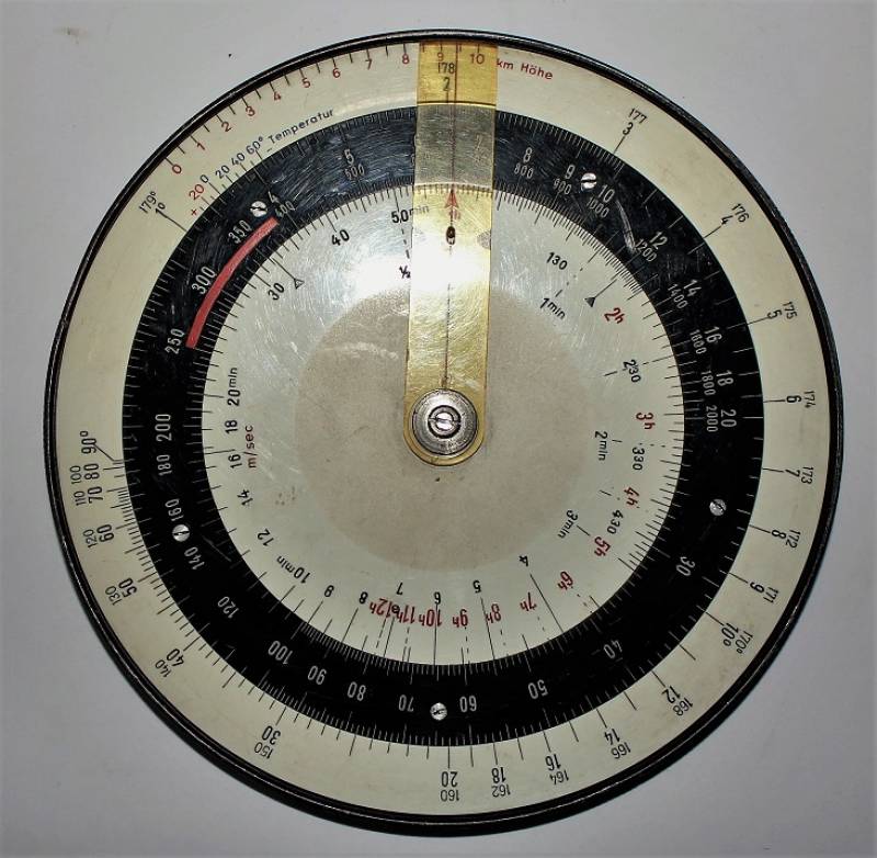 Computer, strumento di navigazione per piloti della LW, condizioni ottime, leggerissima patina del tempo e dellŽuso, completo, perfettamente funzionante. Originale 100% WWII periodo.