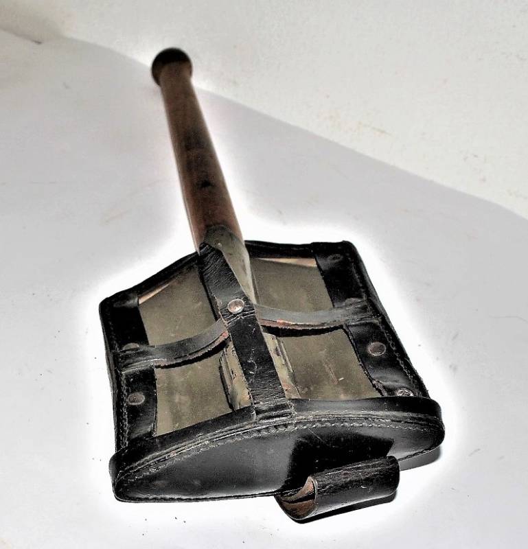 Badile pieghevole mod.38 completo della sua custodia in pelle, in ottime condizioni, con leggera patina del tempo e dellŽuso, non restaurato o riparato, custodia in pelle marcata con nome fabbricante e data 1940. Originale 100% WWII periodo.