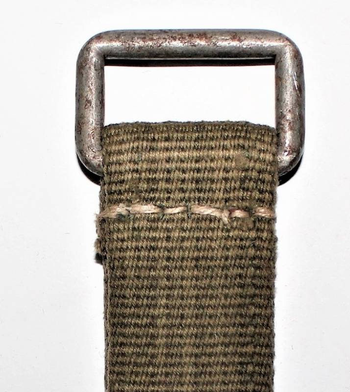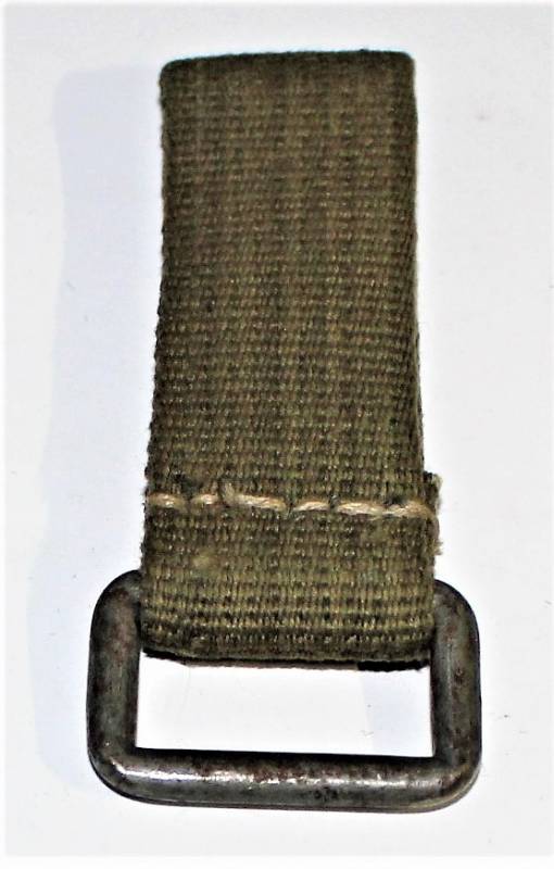 Gancio singolo da sospensione in tela tropicale D.A.K. colore giallo-verde in condizioni perfette. Originale 100% WWII periodo.