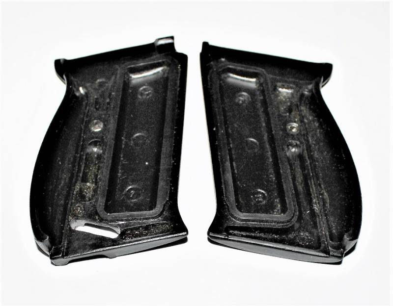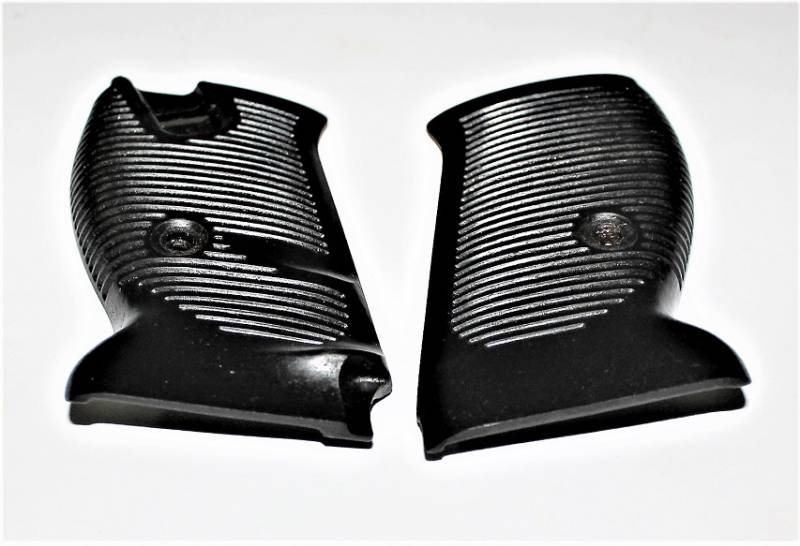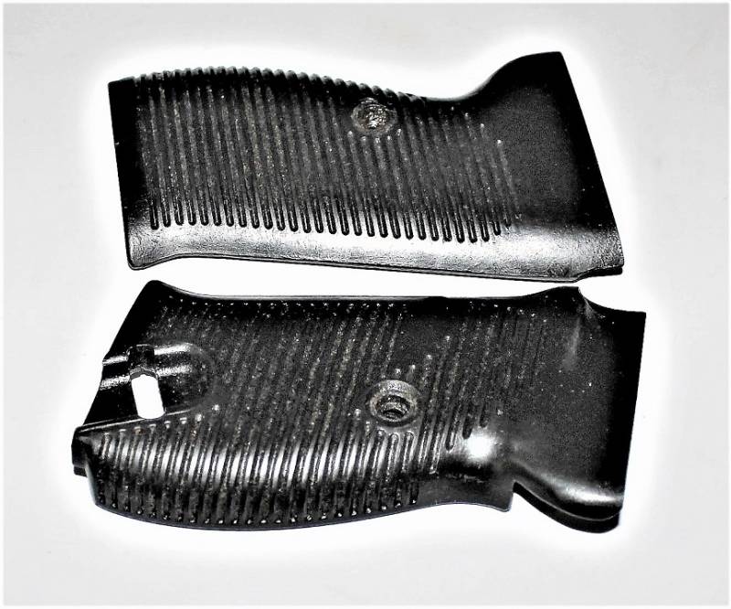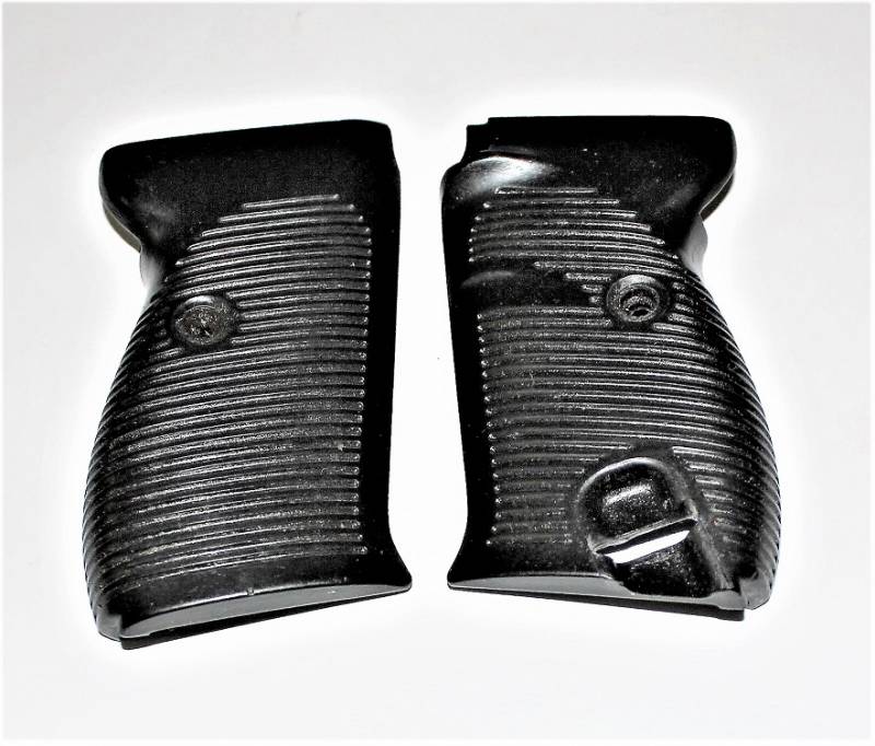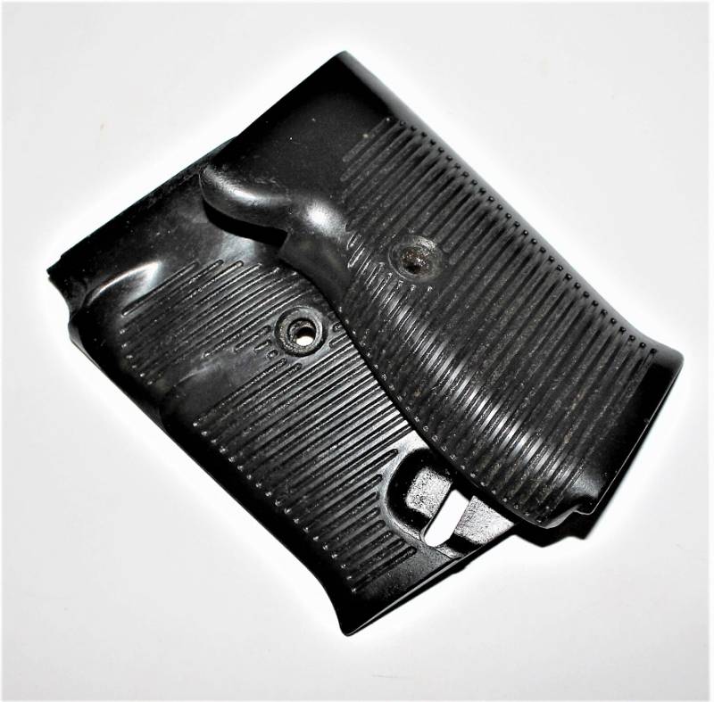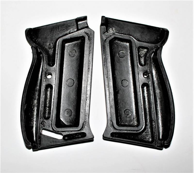 Coppia di guancette in bakelite nere per pistola Walther P38, in condizioni perfette, mai usate, marcate internamente con codice. Originale 100% WWII periodo.