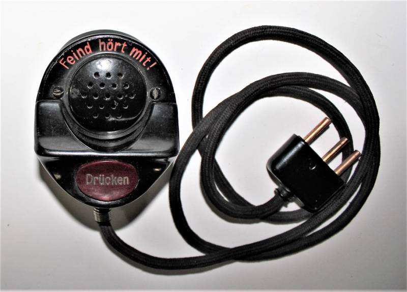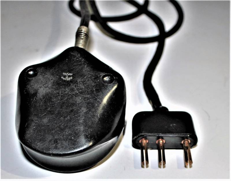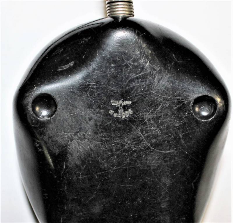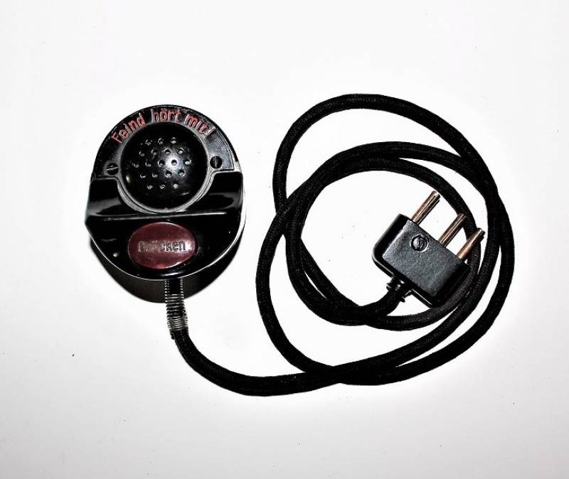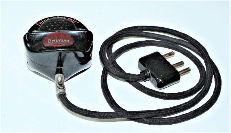 Microfono di servizio in bakelite marrone per carro in condizioni perfette, mai usato, fondo di magazzino, completo di cavetto e spinotto, marcato con waffenamnt. Originale 100% WWII periodo.