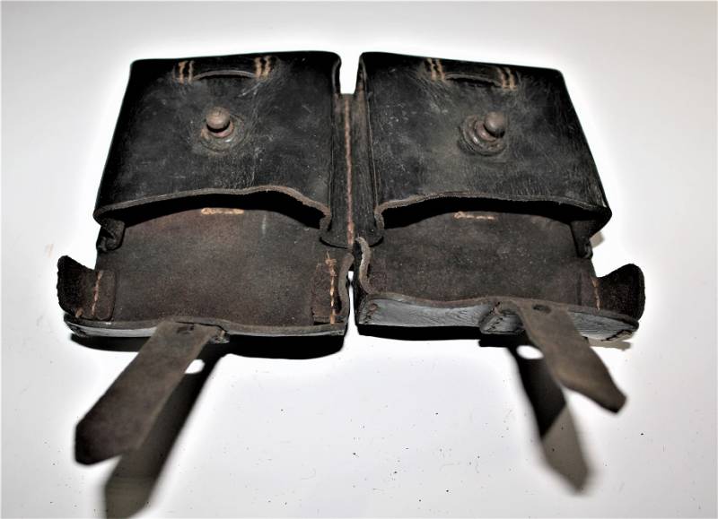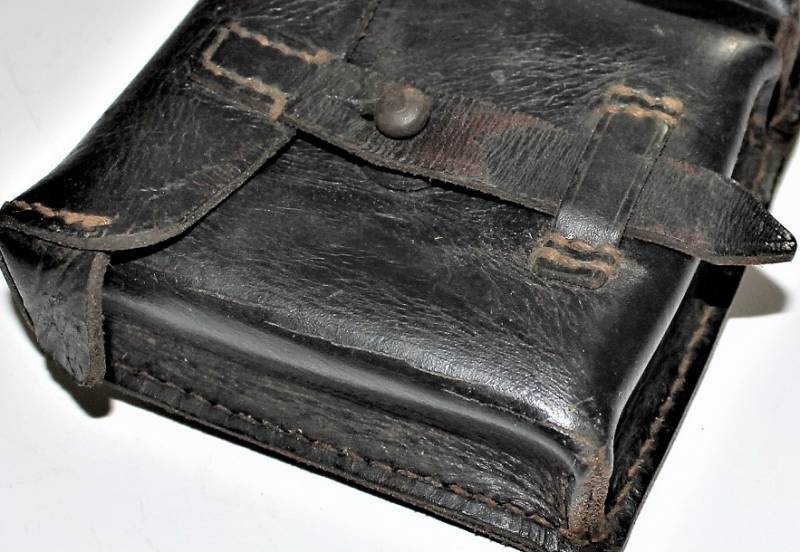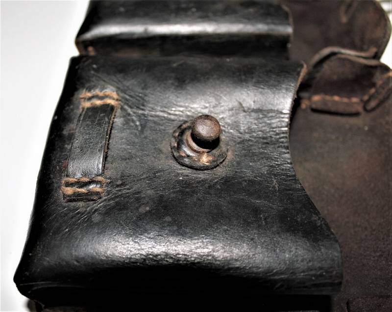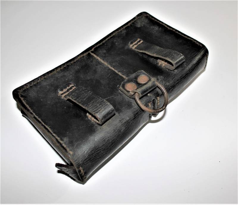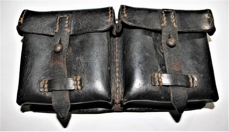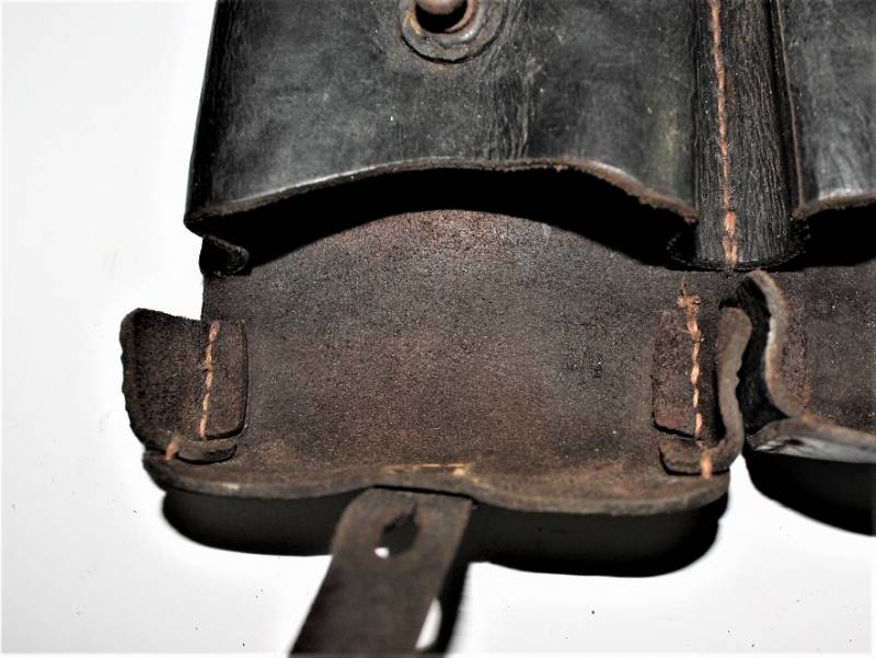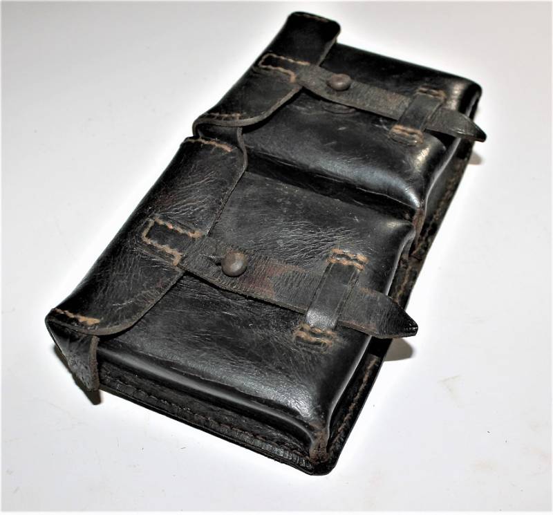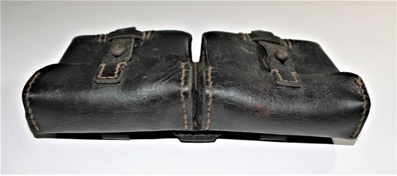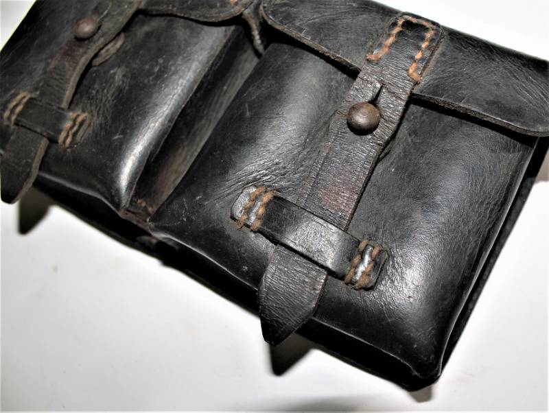 Porta caricatori in pelle per fucile semi automatico K43 G43, condizioni belle, pelle non lesionata, cuciture perfette, non restaurati o riparati, con patina del tempo e dellŽuso, marcati internamente con codice fabbricante "fuq" e data 1944. Originale 100% WWII periodo.