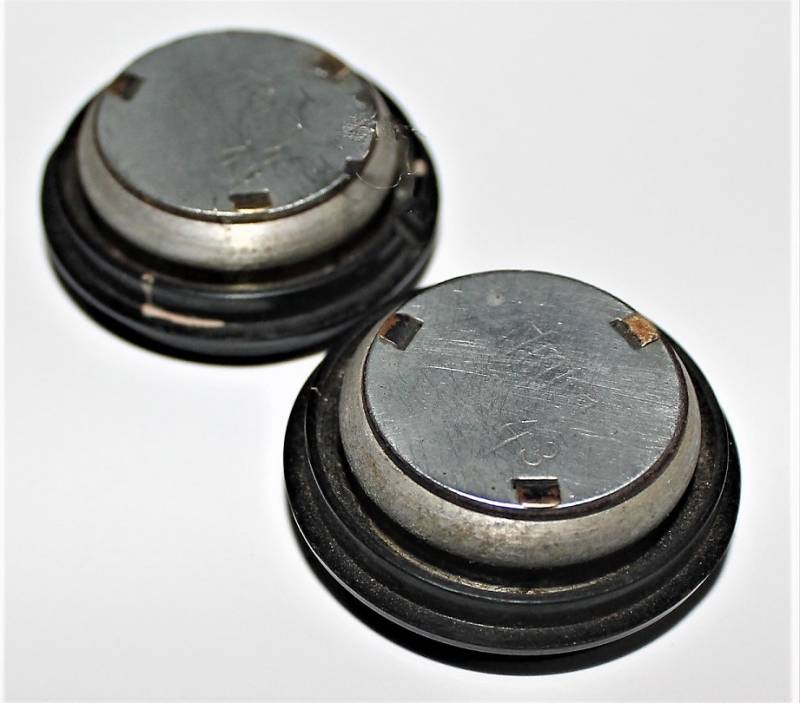 Coppia di microfoni di ricambio per cuffie, condizioni ottime, marcati con sigla fabbricante e data 1943. Originale 100% WWII periodo.