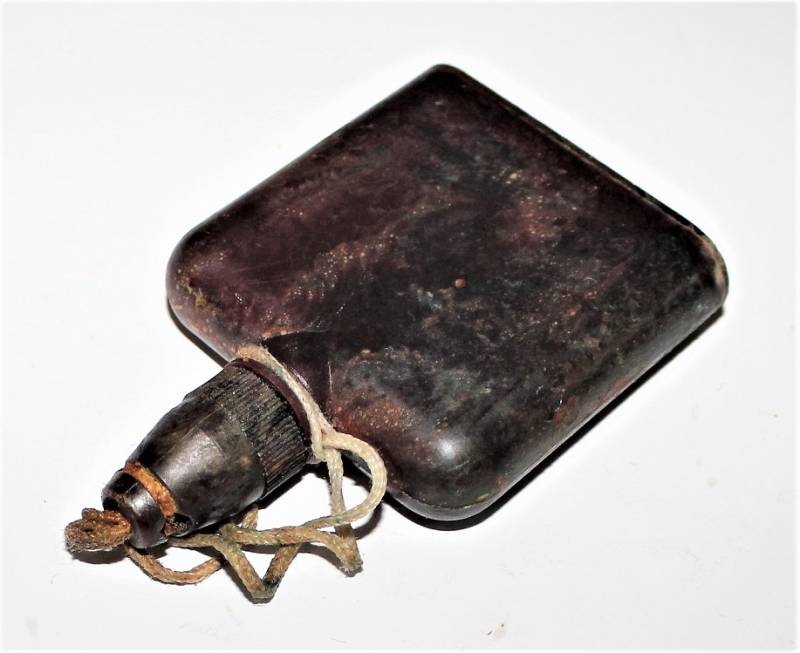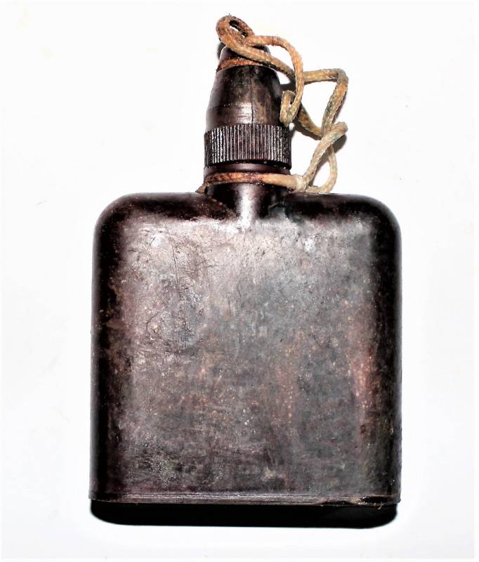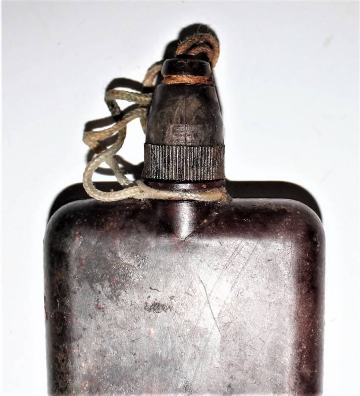 Contenitore in bakelite rossa per liquido anti contaminante in buone condizioni, completo in ogni sua parte, usato con patina del tempo. Marcato con sigla fabbricante, data 1943 e numero articolo. Originale 100% WWII periodo.
