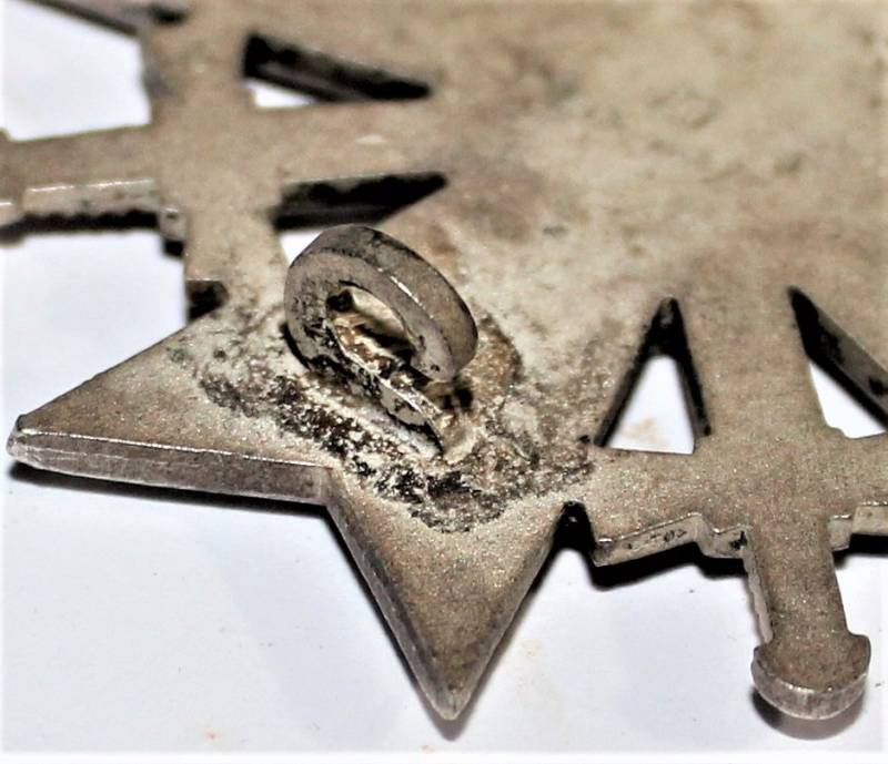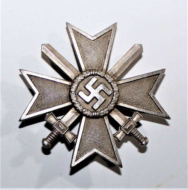 Bellissima Croce Meriti di Guerra con Spade di 1°classe, condizioni ottime quasi pari al nuovo, leggerissima patina del tempo, marcata con numero codice fabbricante. Originale 100% WWII periodo.