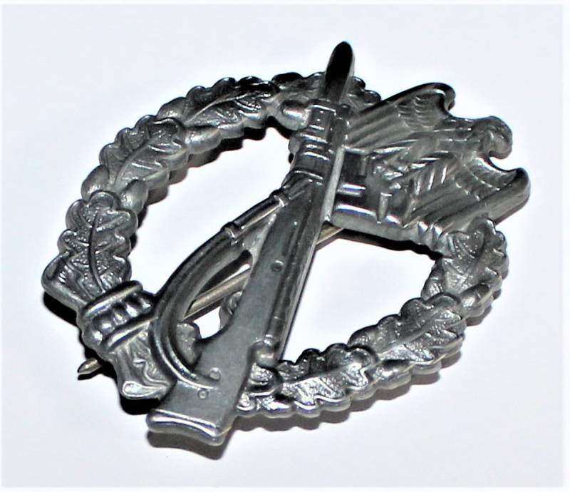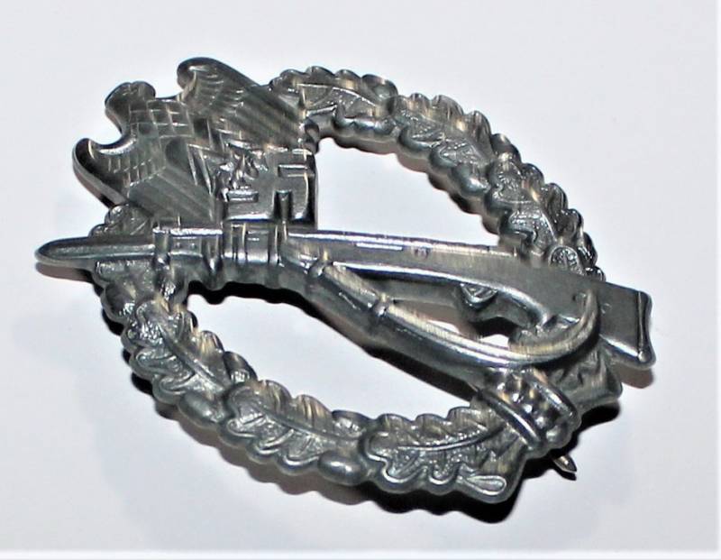 Bellissimo distintivo assaltatore Fanteria in ottime condizioni pari al nuovo ottimi dettagli e ottima argentatura, del tipo nato in lamiera stampata. Originale 100% WWII periodo.