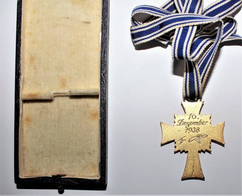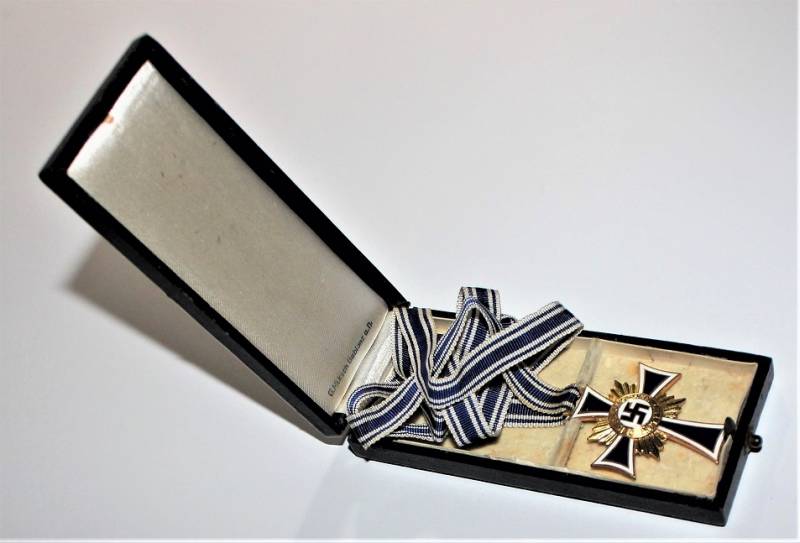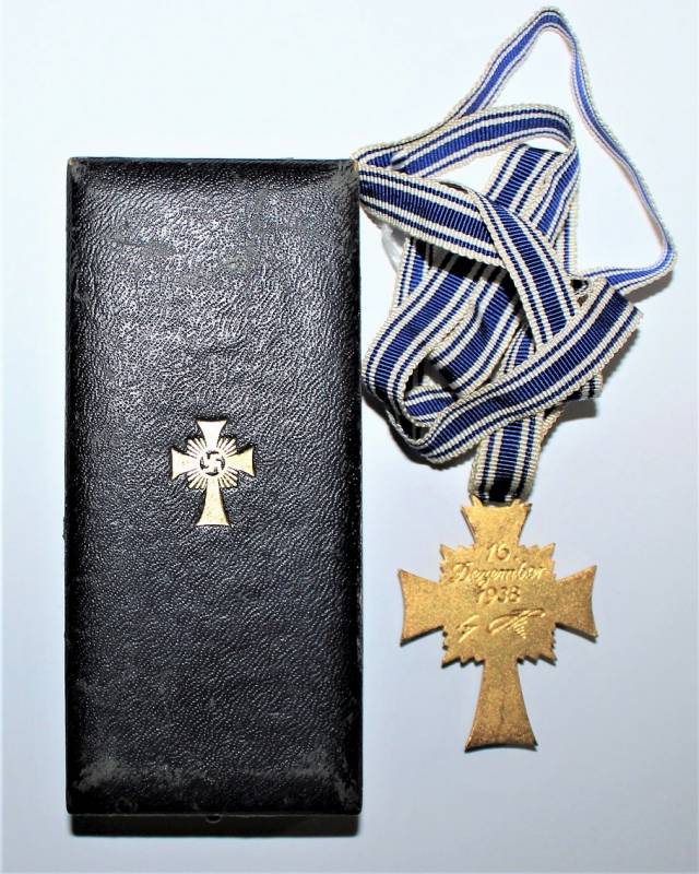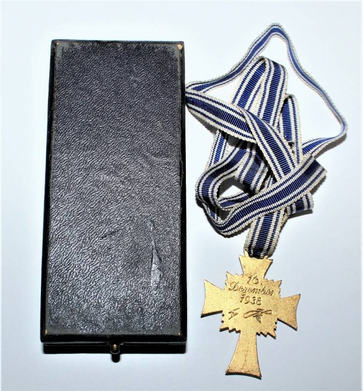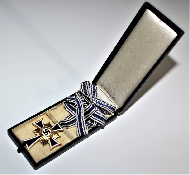 Croce delle Madri Tedesche classe in oro completa della sua scatola, condizioni stupende quasi pari al nuovo, scatola marcata con nome del fabbricante. Originale 100% WWII periodo.