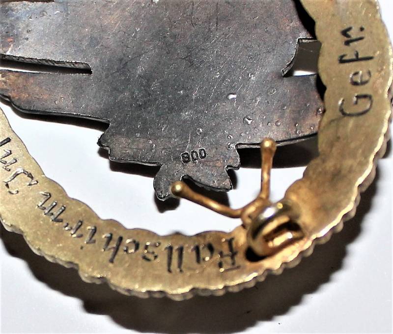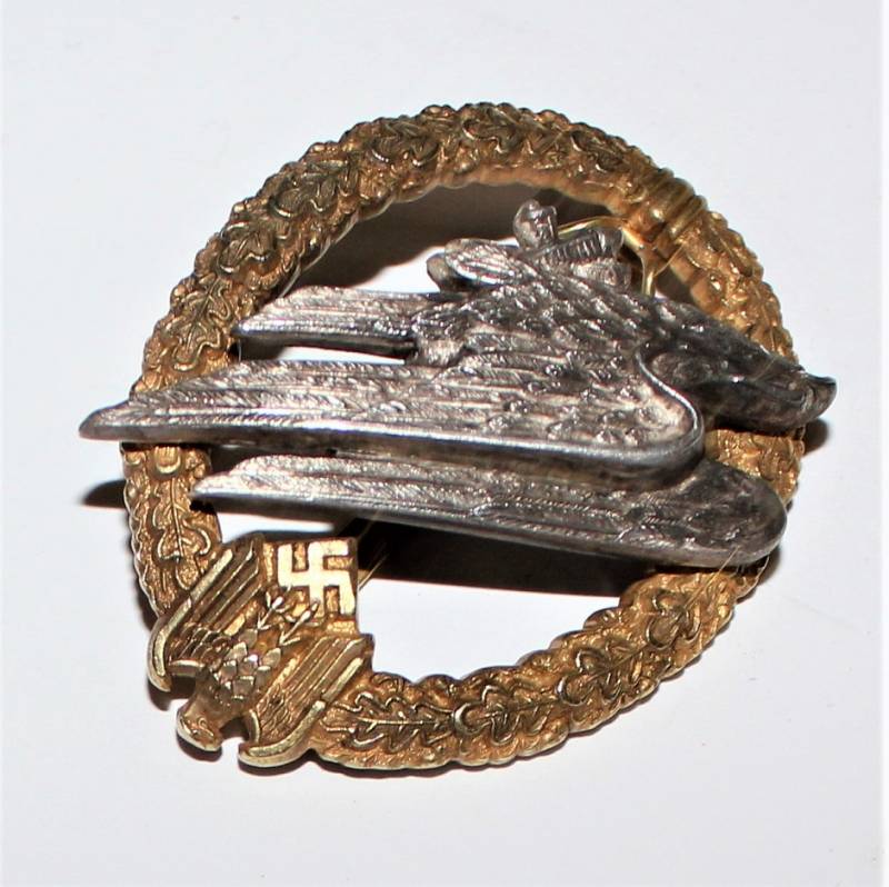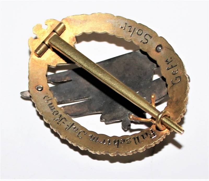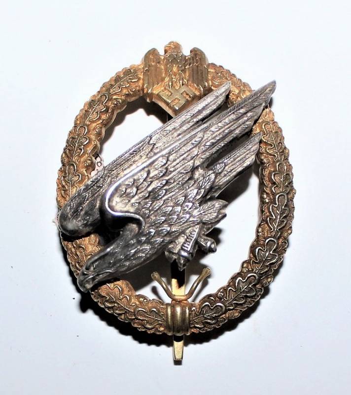 Questo distintivo molto particolare e unica versione nata in argento veniva acquistato privatamente da parte dei Membri della Fallschirm Infanterie. Molto raro e originale 100% WWII periodo.