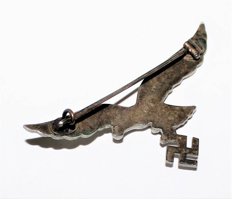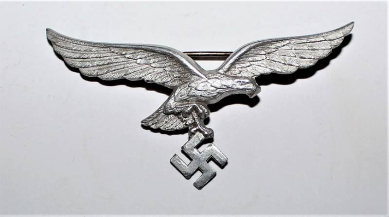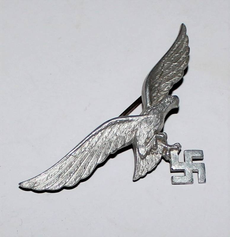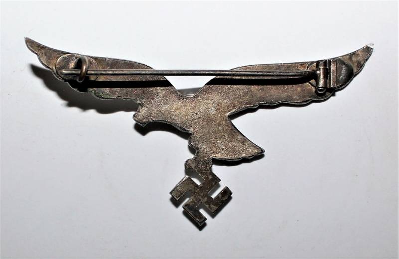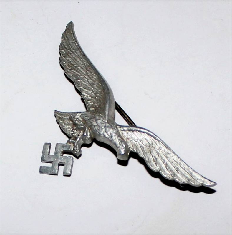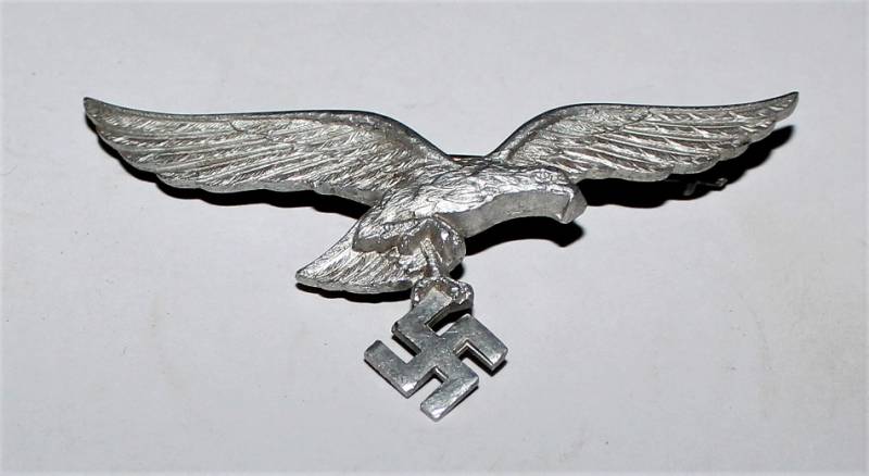 Aquila in metallo per giacca estiva bianca da Ufficiale Luftwaffe in ottime condizioni, non restaurata o riparata, solo con leggera patina del tempo.