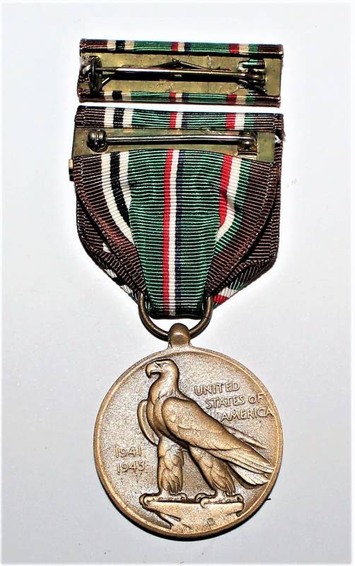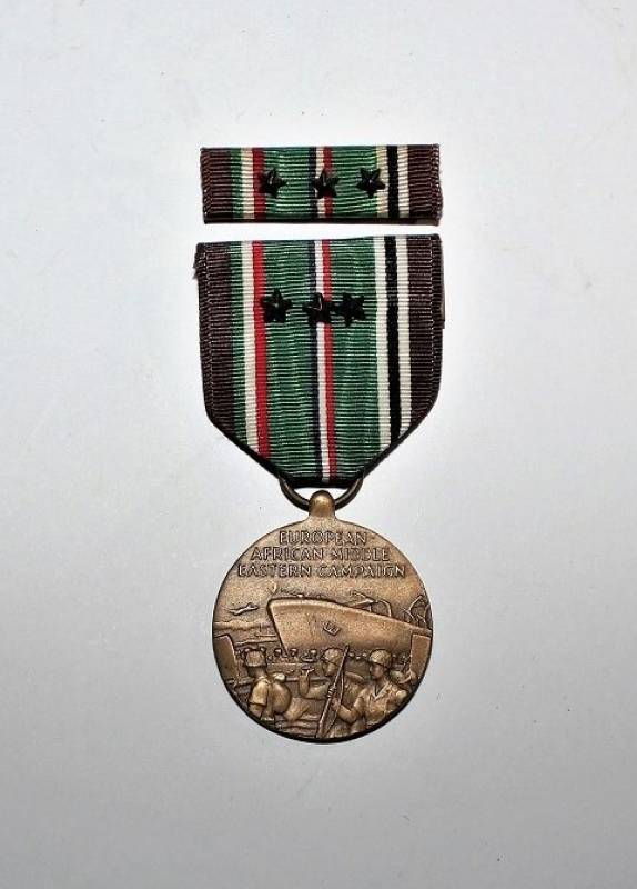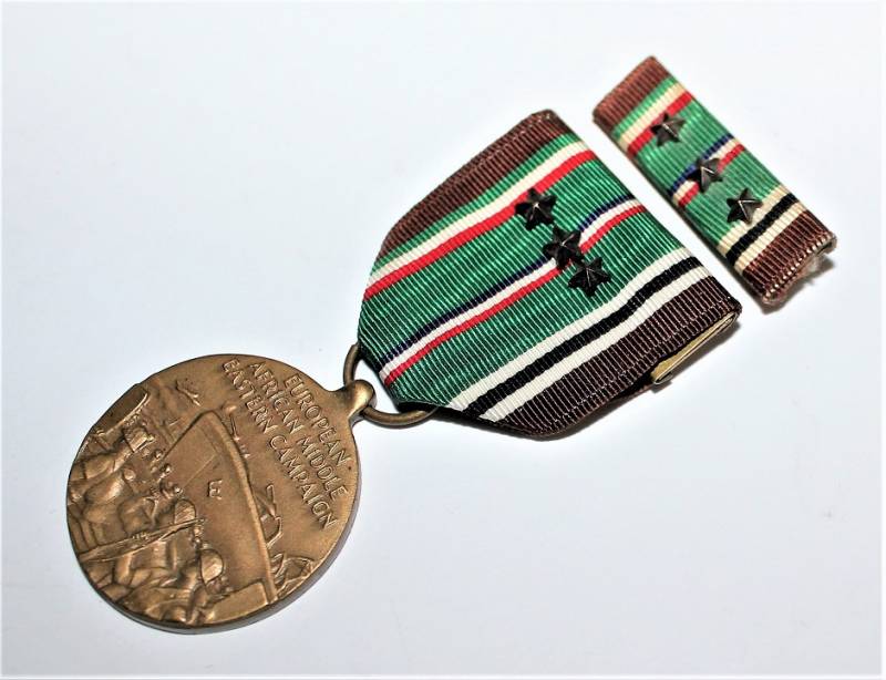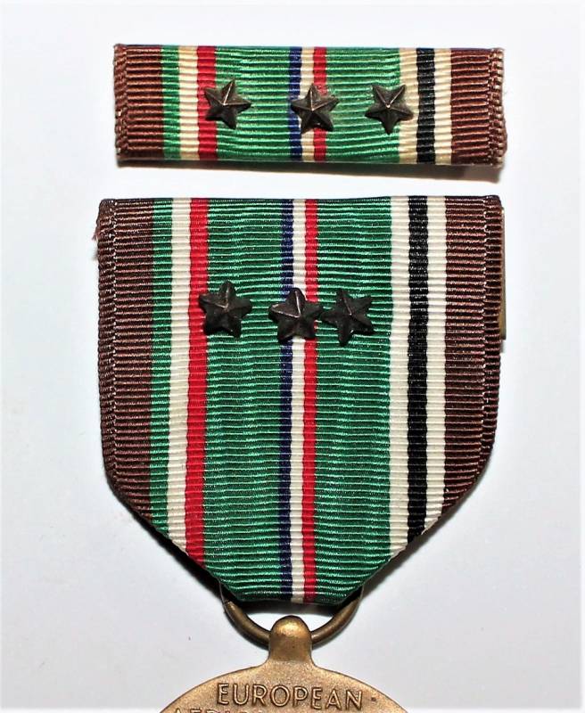 Medaglia US ARMY Campagna Europea-Africa Meridionale in ottime condizioni, completa di nastrino e barretta con tre stelle, quasi pari al nuovo.