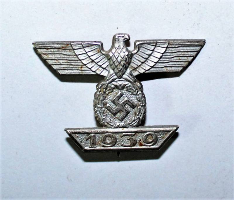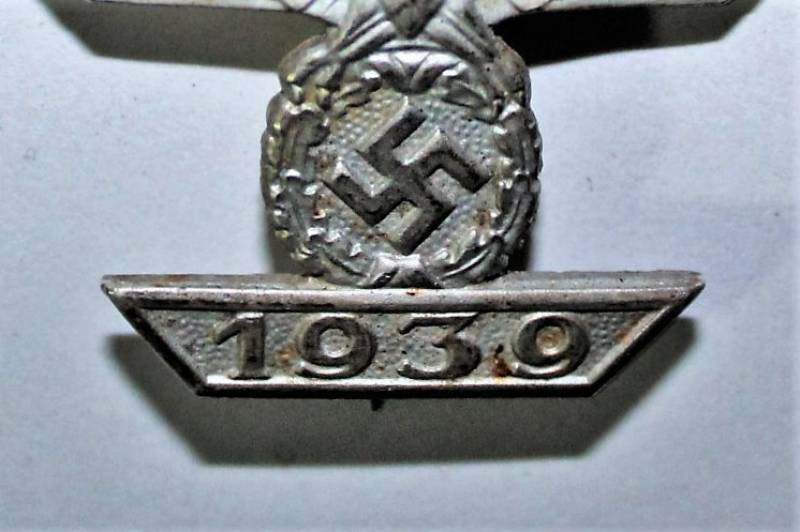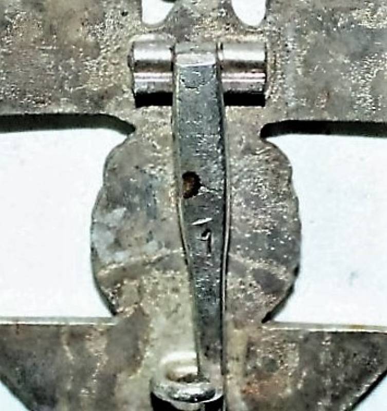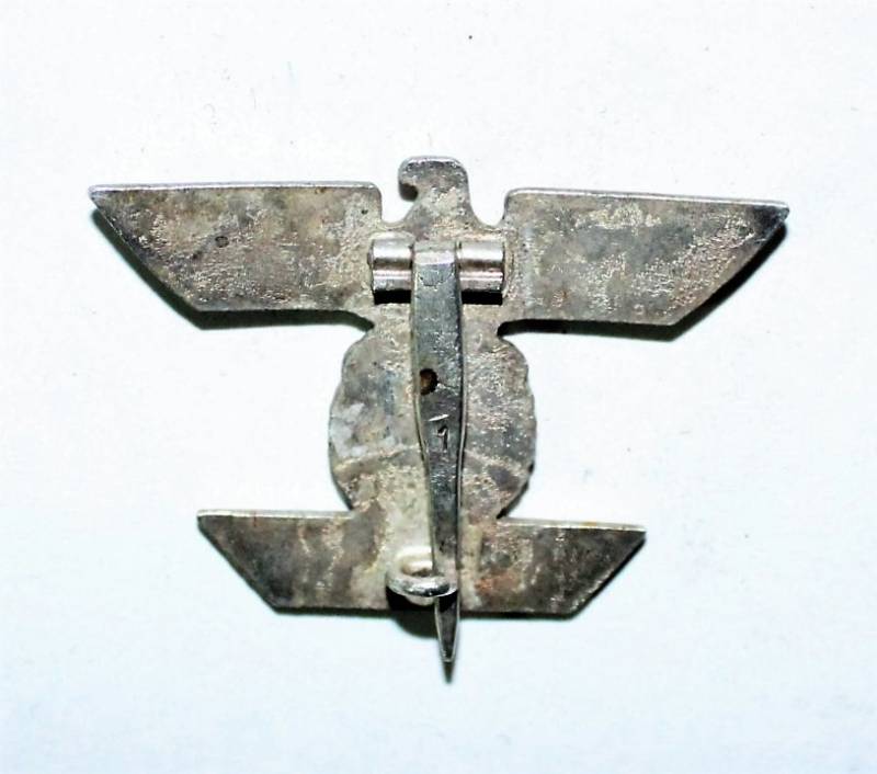 Distintivo della riconferma della Croce di Ferro di 1°classe della 1° Guerra Mondiale, condizioni ottime, con ancora la sua argentatura al 90%, leggera patinatura del tempo e dellŽuso, marcata sulla spilla con numero di riferimento del fabbricante. Originale 100% WWII periodo.