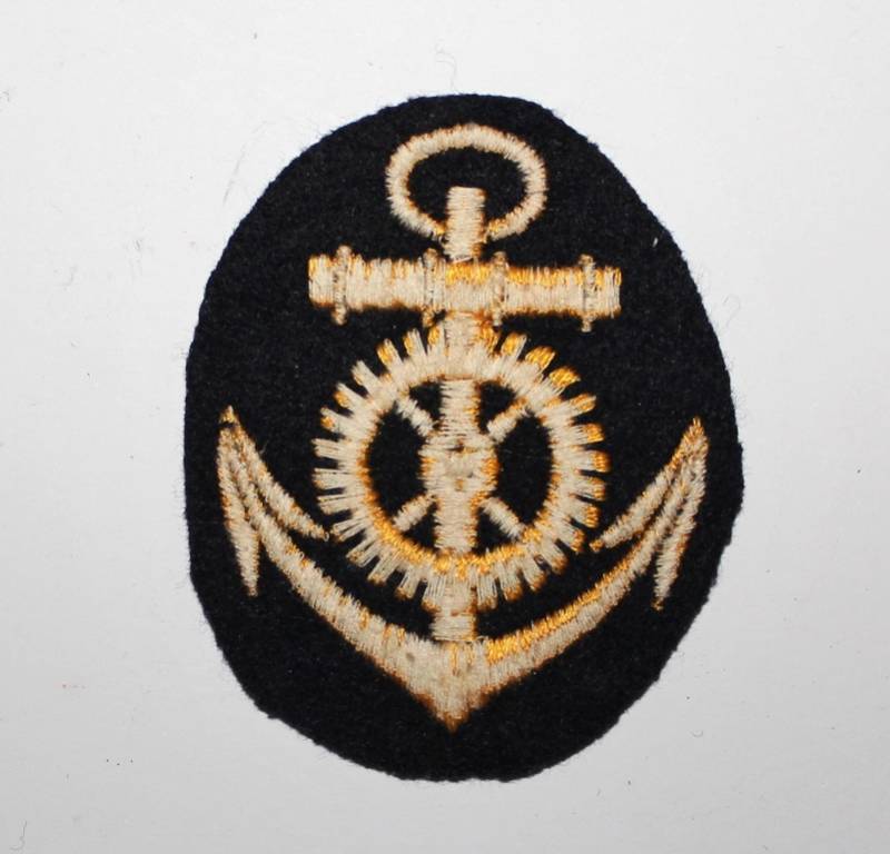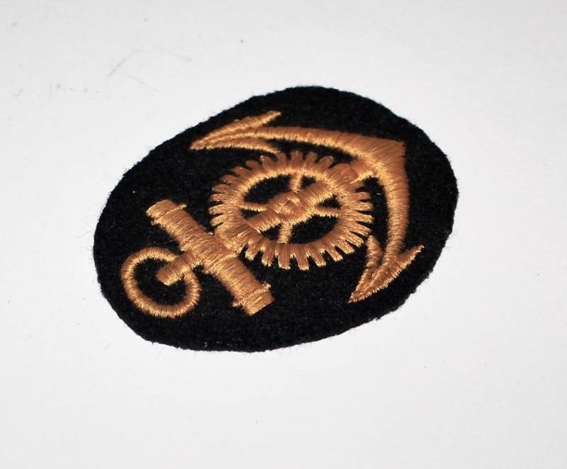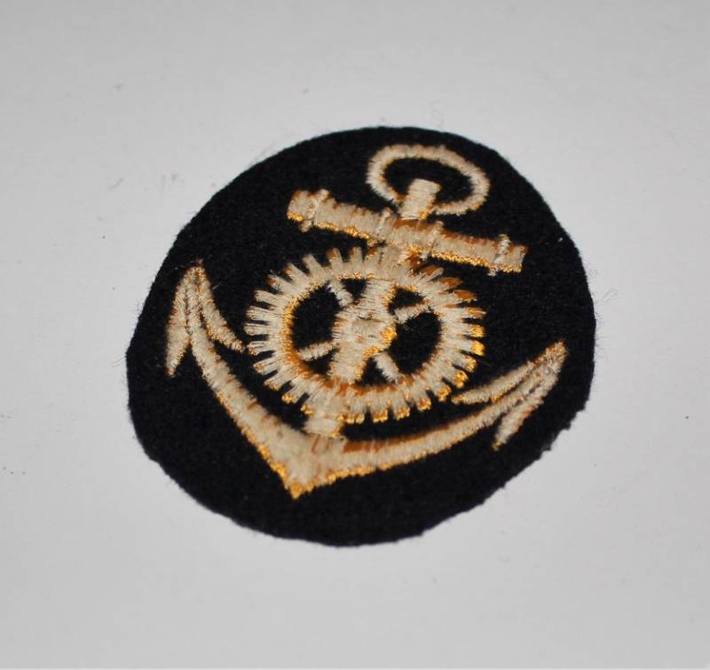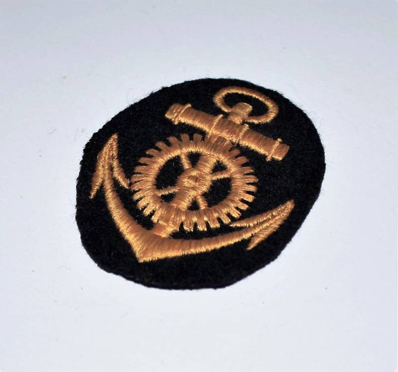 Distintivo della KM specialista motorista di macchina nato ricamato in filo di cotone color oro su fondo di lana blu, condizioni ottime. Originale 100% WWII periodo.