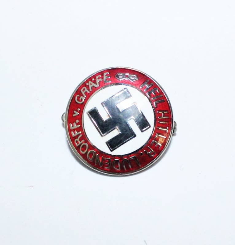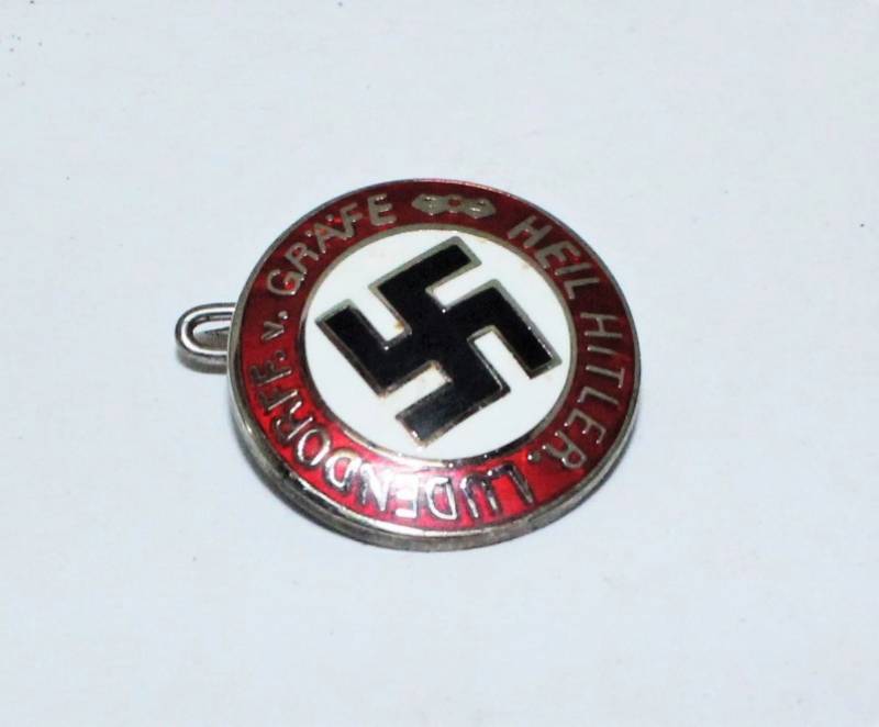 Distintivo generico politico smaltato, condizioni buone, patinato dal tempo e dallŽuso, marcato sul retro con codici RZM. Originale 100% WWII periodo.