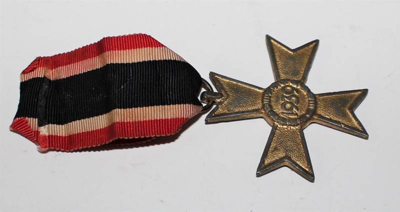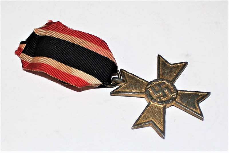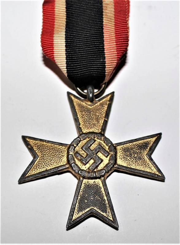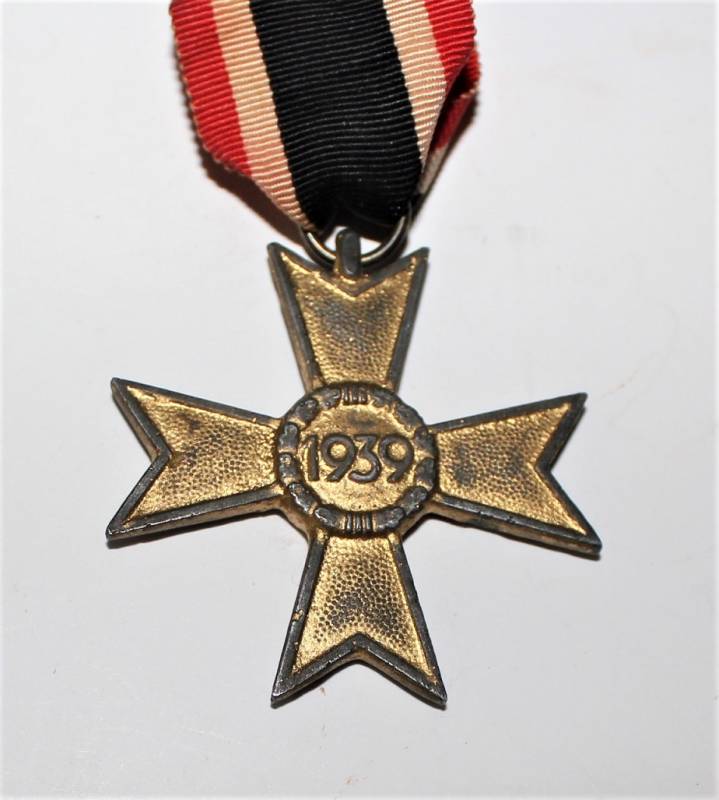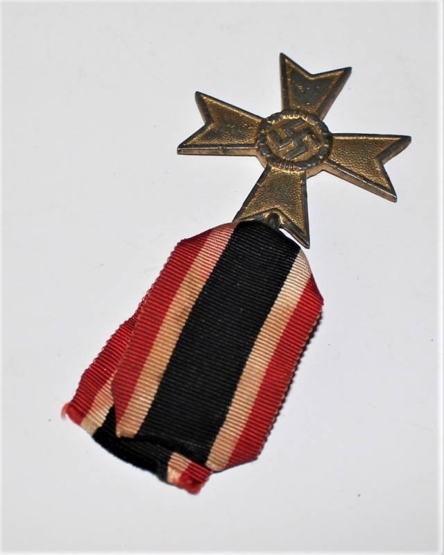 Medaglia meriti di guerra di 2°classe, completa di nastrino, con patina del tempo ma in buone condizioni. Originale 100% WWII periodo.
