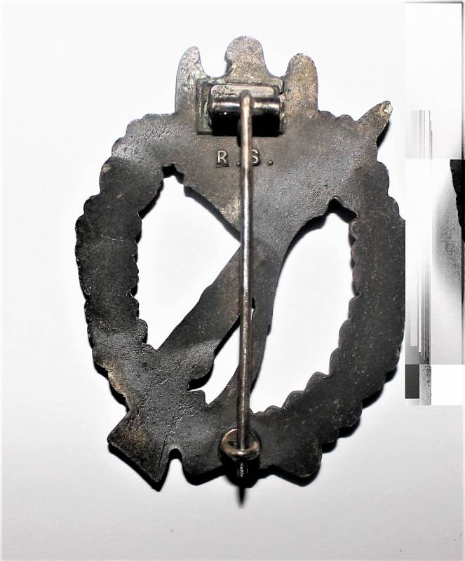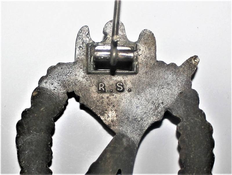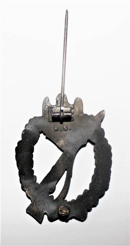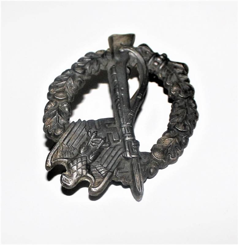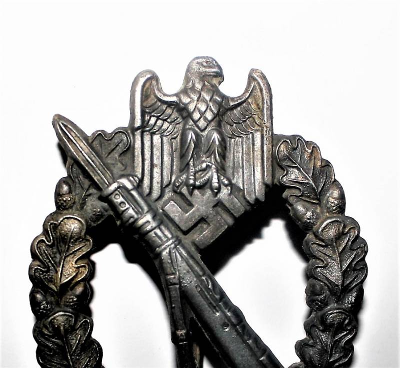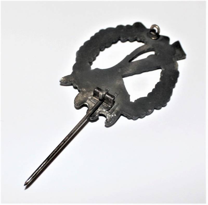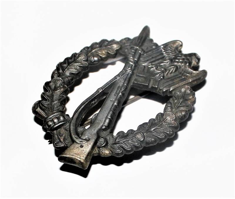 Distintivo assaltatore fanteria in buone condizioni, patinato dal tempo e dallŽuso, ma nel complesso in ottimo, marcato con codice fabbricante. Originale 100% WWII periodo.