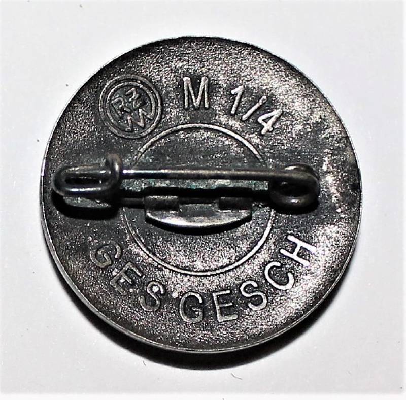 Distintivo politico SS smaltato con rune bianche leggermente patinato dal tempo e dallŽuso, sul retro marcato con RZM M1/4 GESGESCH. Originale 100% WWII periodo.