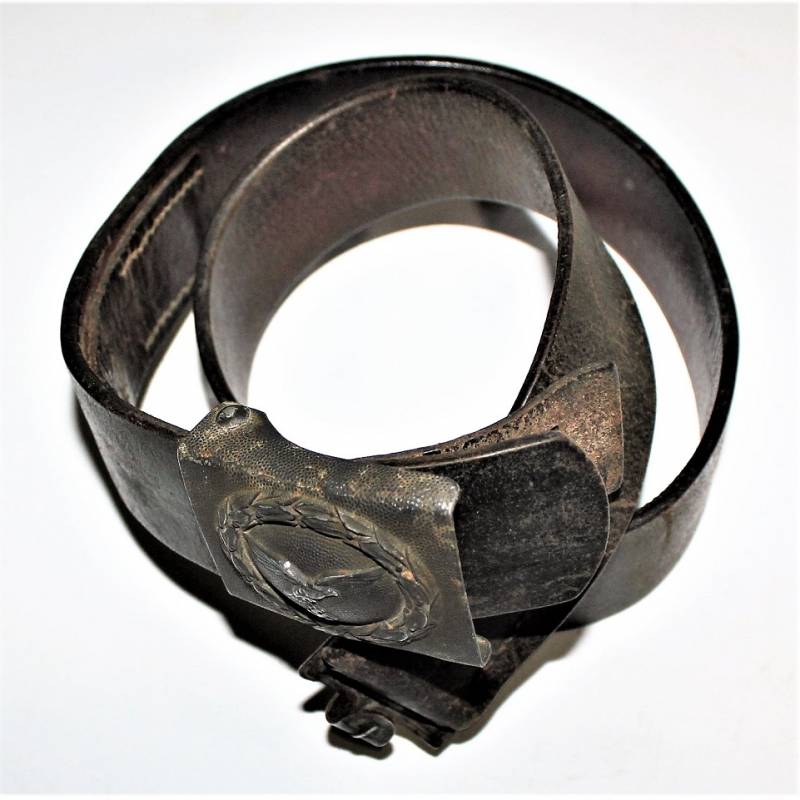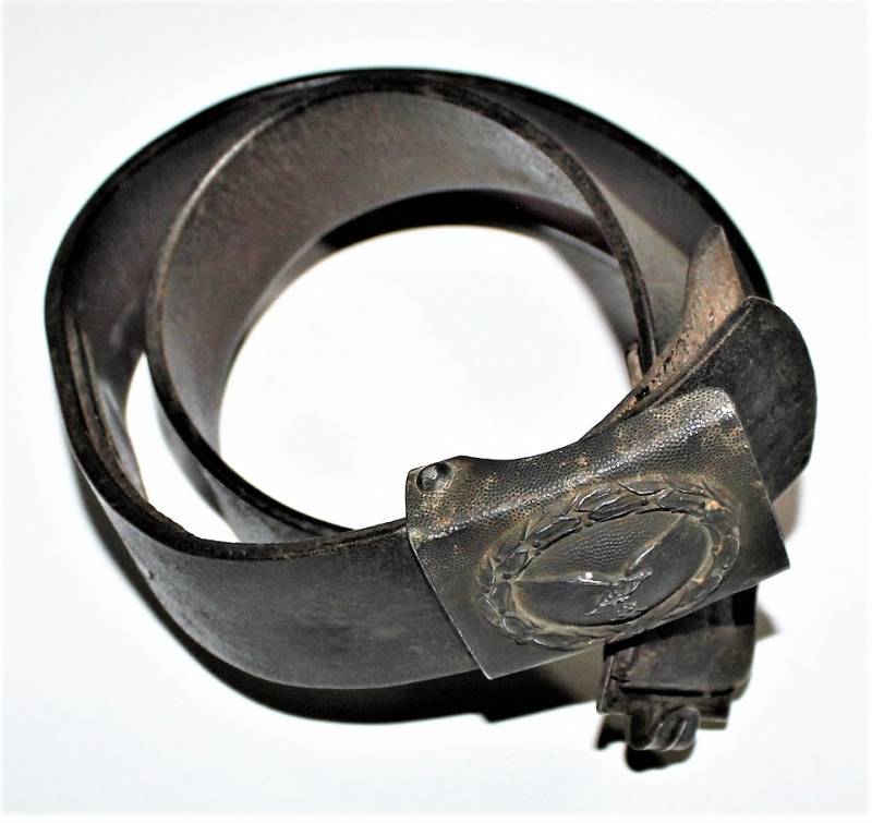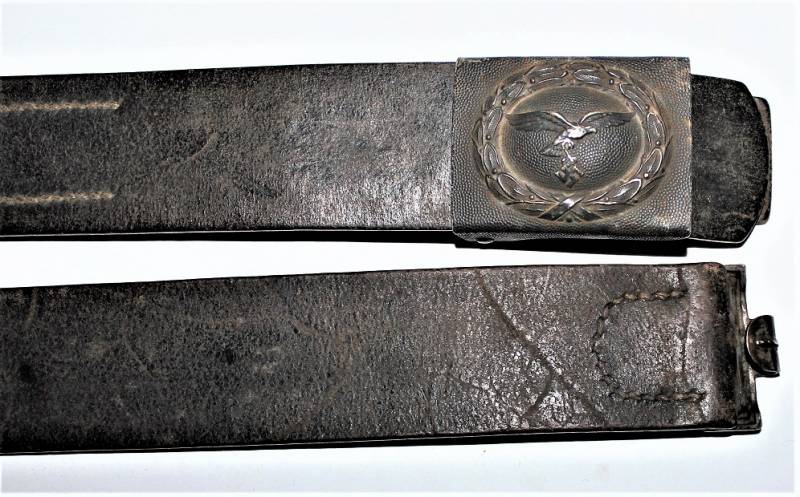 Cinturone e fibbia da truppa della LW in buone condizioni, con leggera patina del tempo e dellŽuso, non restaurata o riparata, pelle ancora morbida in ottime condizioni non lesionata, fibbia in alluminio in colorazione blu Luftwaffe leggermente patinata, marcata con codice fabbricante, cinturone marcato con lunghezza cm 90. Originale 10% WWII periodo.