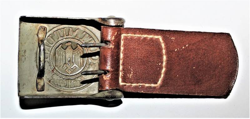 Bellissimo cinturone e fibbia Tropicale DAK della WH da Truppa in condizioni perfette, quasi pari al nuovo, fibbia in acciaio in verniciatura verde mela 1°tipo quasi al 100% con pattina in pelle marcata con sigla del fabbricante e data 1941, fibbia marcata con codice fabbricante e data 1940.