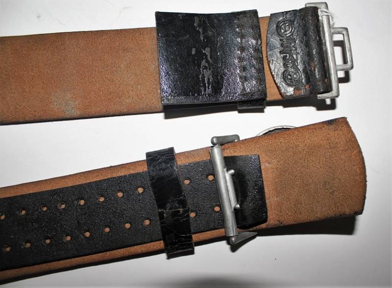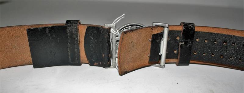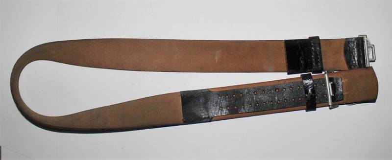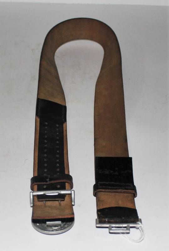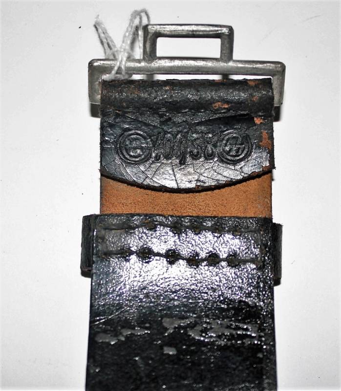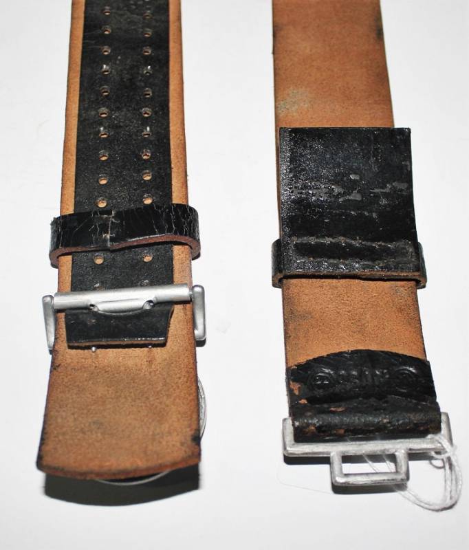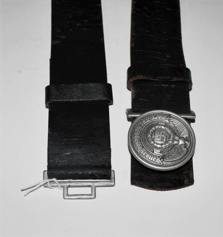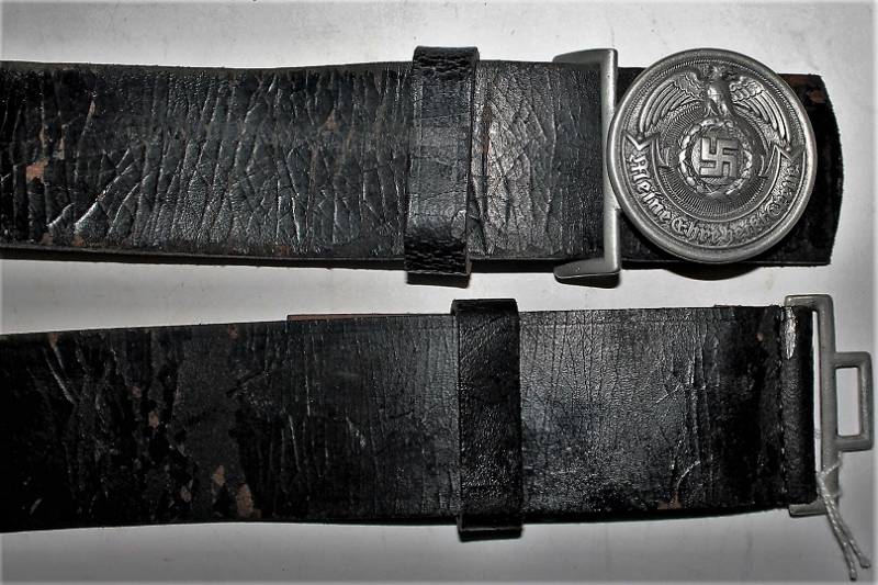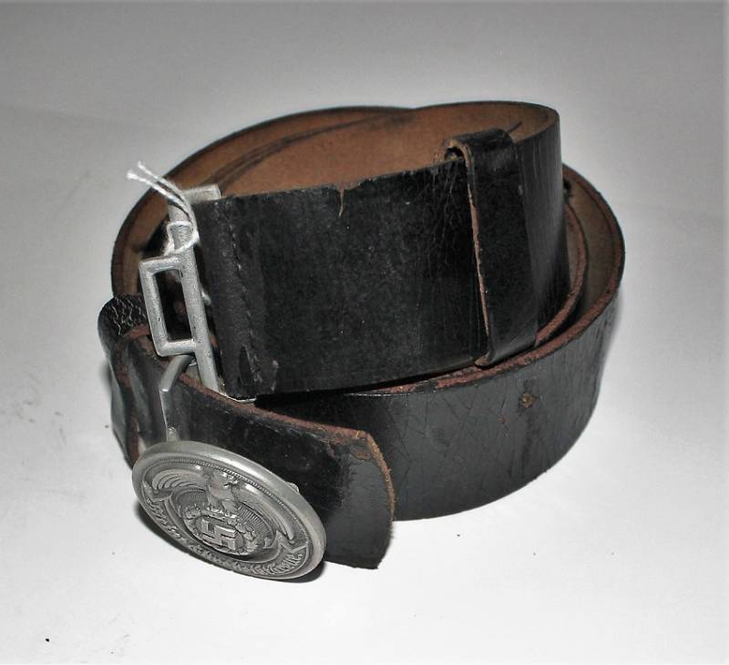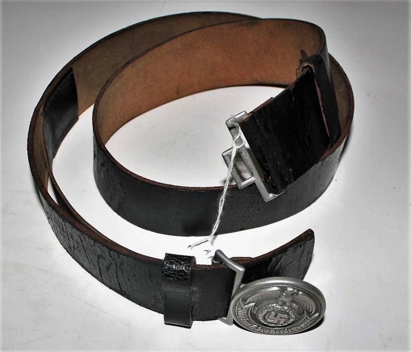 Cinturone e fibbia da Ufficiale W.SS in belle condizioni, completa in ogni sua parte, non riparata o restaurata, non lesionata solo leggera sofferenza della vernice nera sul cuoio, completa di fibbia in alluminio marcata con regolari marchi dŽaccettazione, anche il cinturone marcato sul cuoio RZM 401/38 SS. Lunghezza 115cm. Originale 100% WWII periodo.