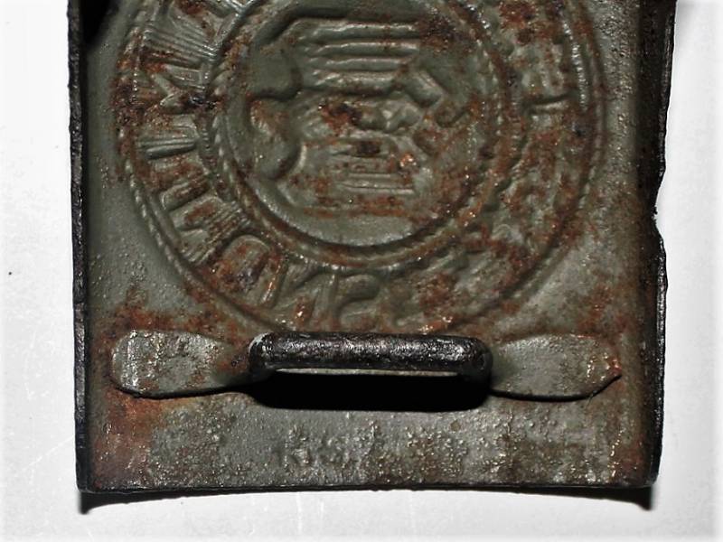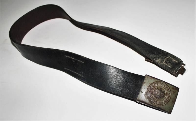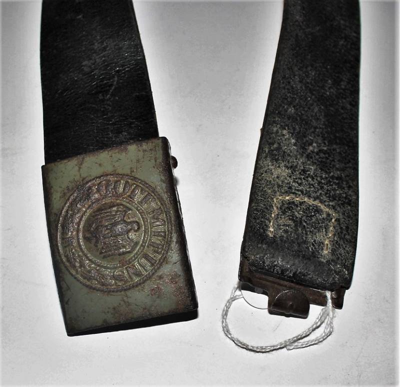 Cinturone da truppa della WH completo di fibbia in acciaio in colorazione verde, evidente usura del tempo e dellŽuso ma ancora buona. Fibbia marcata con codice fabbricante. Lunghezza 85cm. Originale 100% WWII periodo.