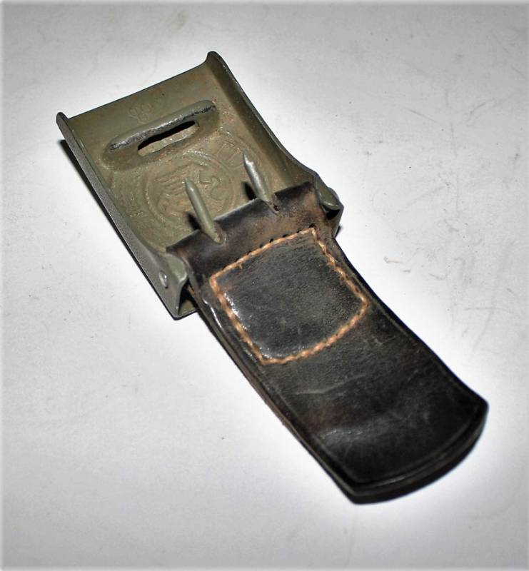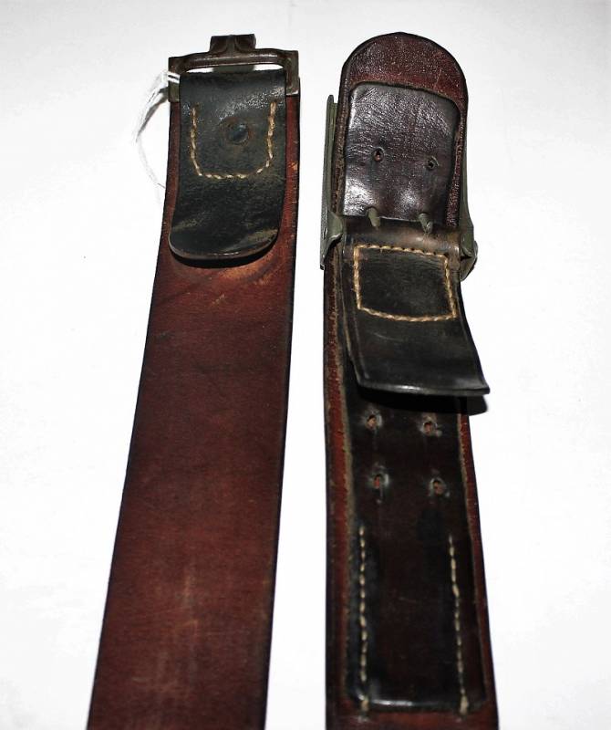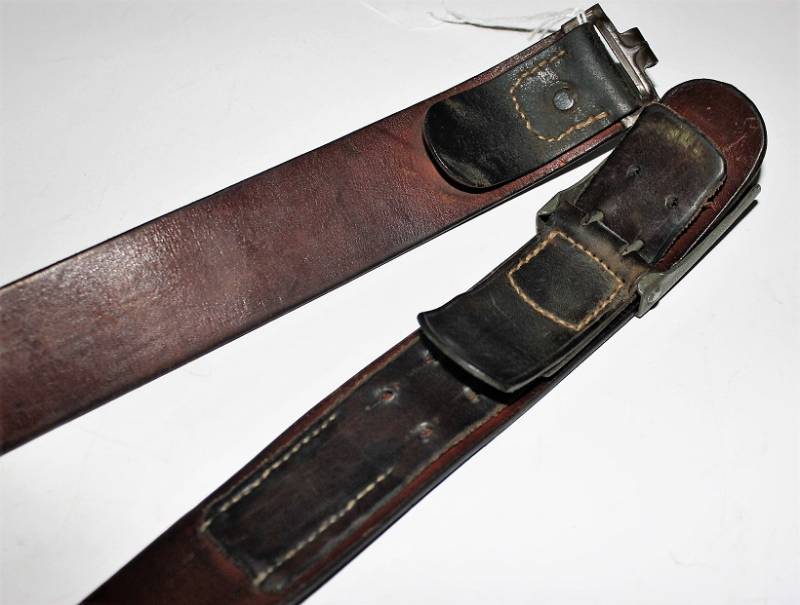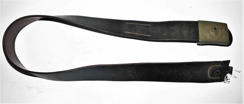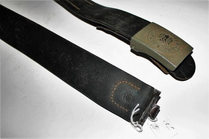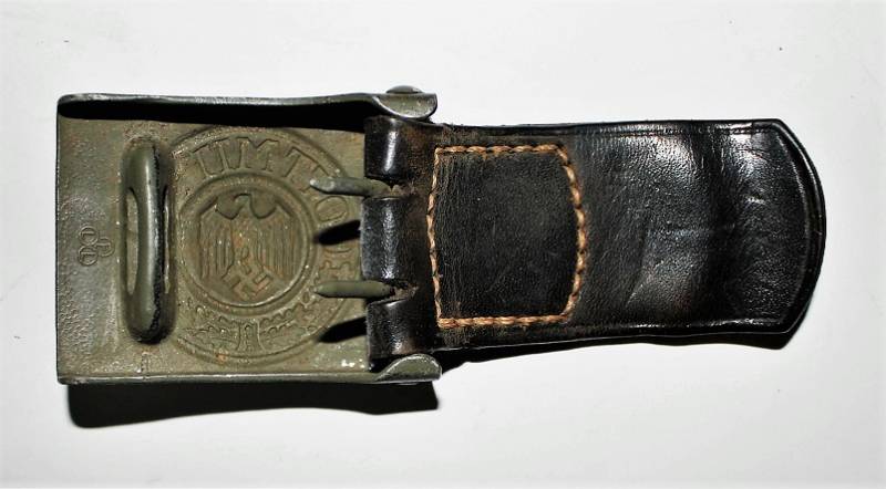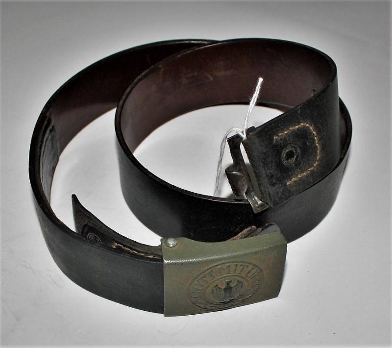 Cinturone e fibbia da truppa della WH in ottime condizioni, leggeri segni del tempo e dellŽuso, nata in cuoio colore nero, non lesionato, fibbia in alluminio verniciata con verde chiaro di 1°tipo, completa di pattina marcata con nome fabbricante e anno 1937, fibbia marcata con codice fabbricante. Lunghezza 85cm. Originale 100% WWII periodo.