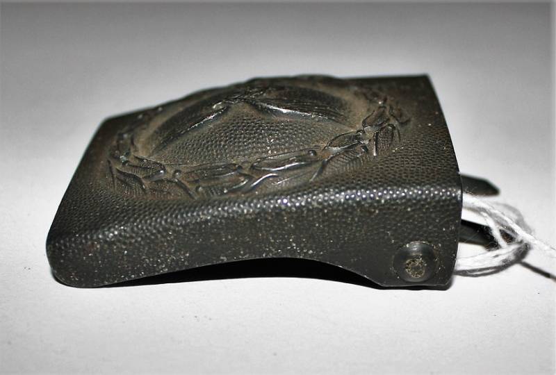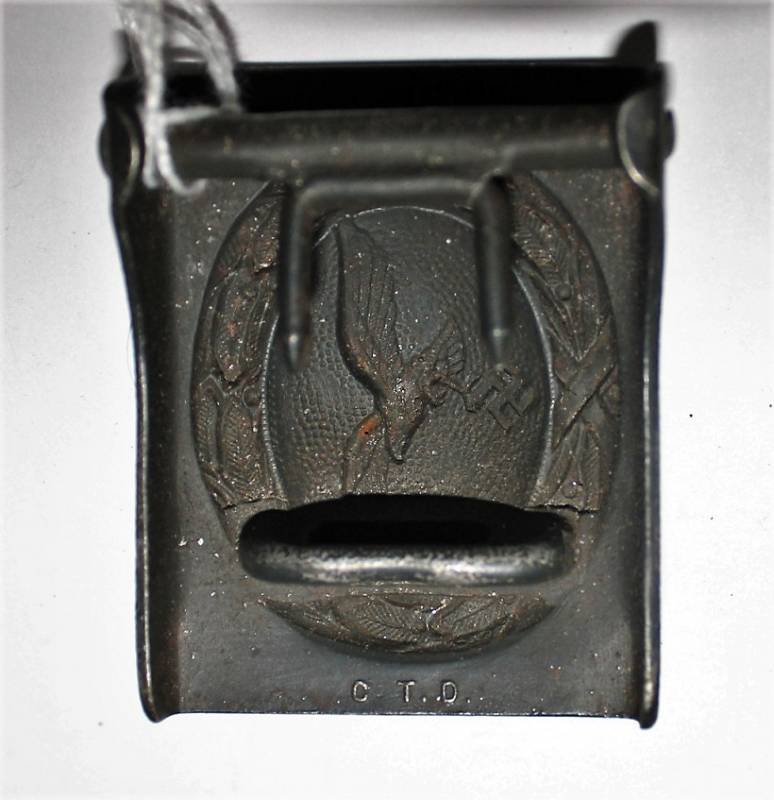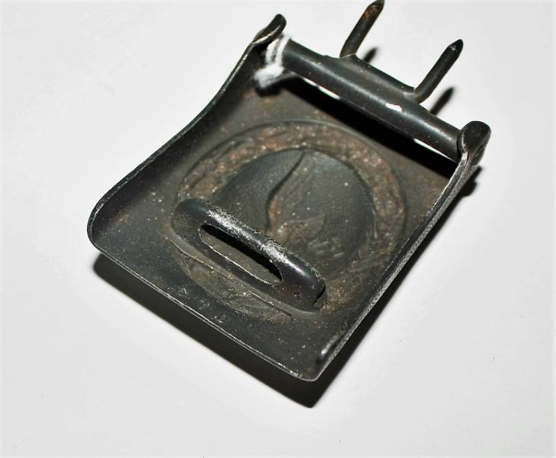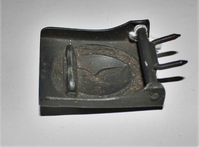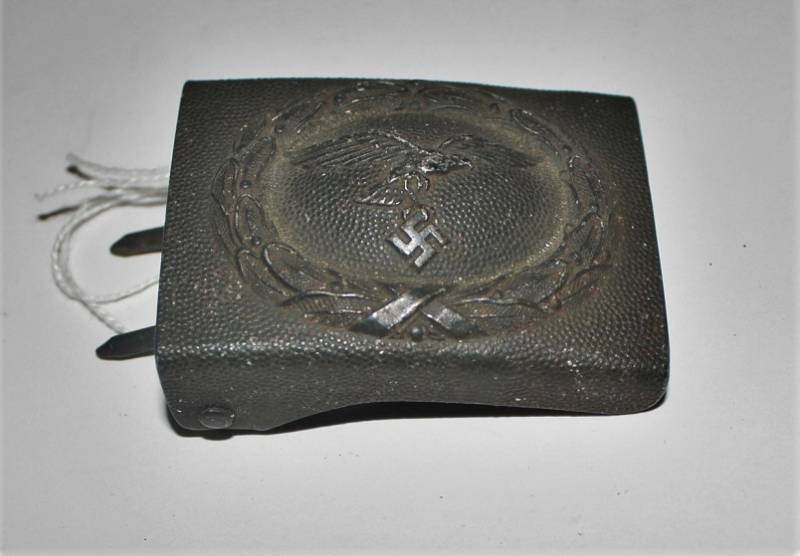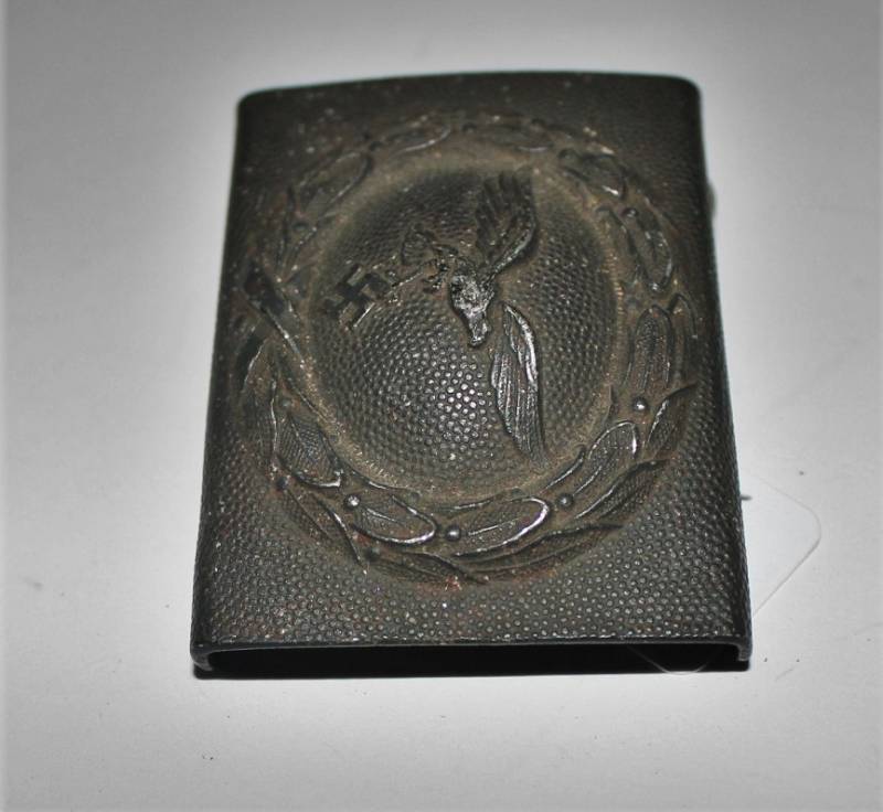 Fibbia da truppa della LW in alluminio, nata in verniciatura blugrau al 90%, condizioni belle, marcata con codice fabbricante. Originale 100% WWII periodo.