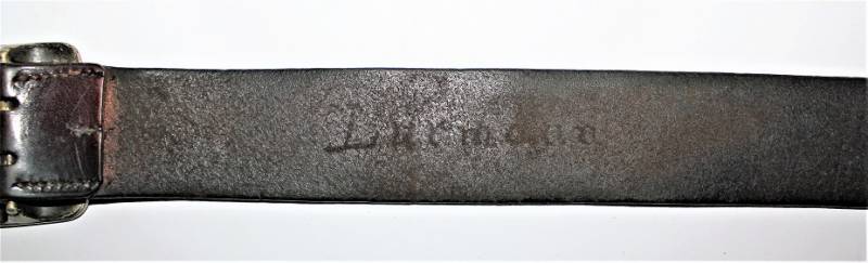 Cinturone da Ufficiale WH-LW-SS in pelle nera, altezza 40 cm, lunghezza 90 cm, pelle e cuciture in buone condizioni solo con patina del tempo e dellŽuso, nella parte interna nome dellŽUfficiale inciso sulla pelle.