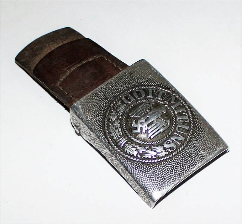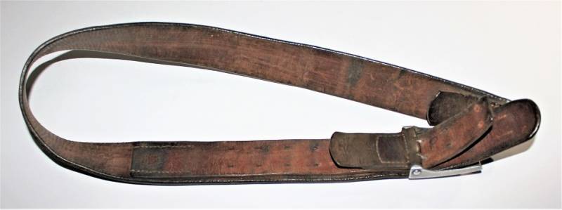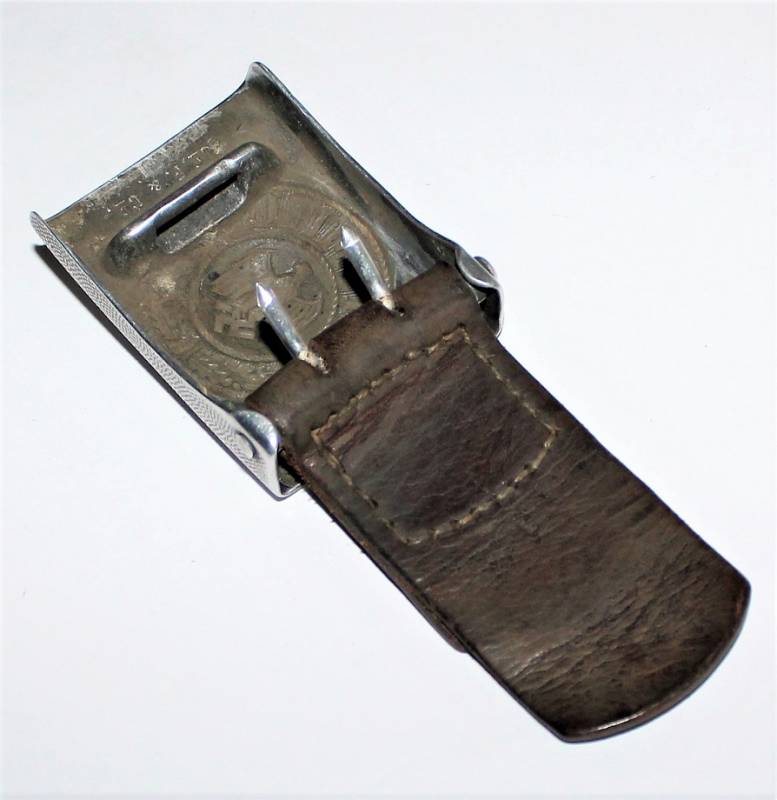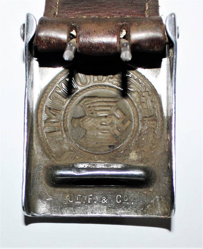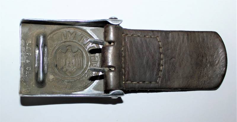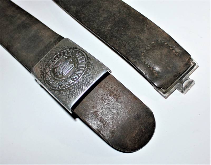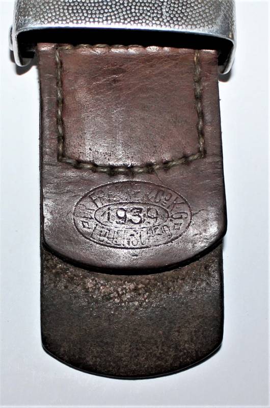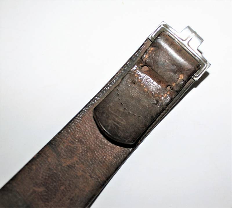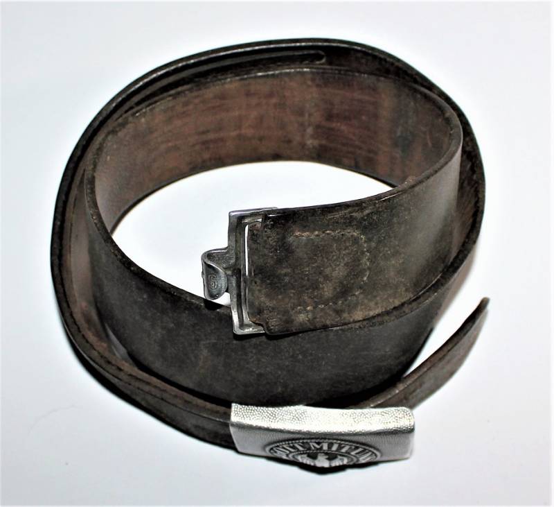 Cinturone e fibbia da Truppa della WH tutto in buone condizioni, fibbia in alluminio marcata con codice fabbricante, completa di passante in cuoio anch´esso marcato con fabbricante e data 1939, cinturone in cuoio nero in ottime condizioni lunghezza circa cm 100 non lesionato e con cuciture perfette solo riparazione in epoca vicino al gancio. Originale 100% WWII periodo.
