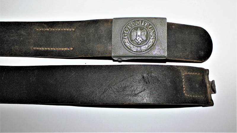 Cinturone e fibbia da Truppa della WH tutto in ottime condizioni, fibbia in alluminio marcata con codice fabbricante e data 1940, completa di passante in cuoio anch´esso marcato con nome fabbricante e data 1940, cinturone in cuoio nero in ottime condizioni lunghezza circa cm 100 non lesionato e con cuciture perfette anch´esso marcato con nome fabbricante e data 1940. Non restaurata o riparata.