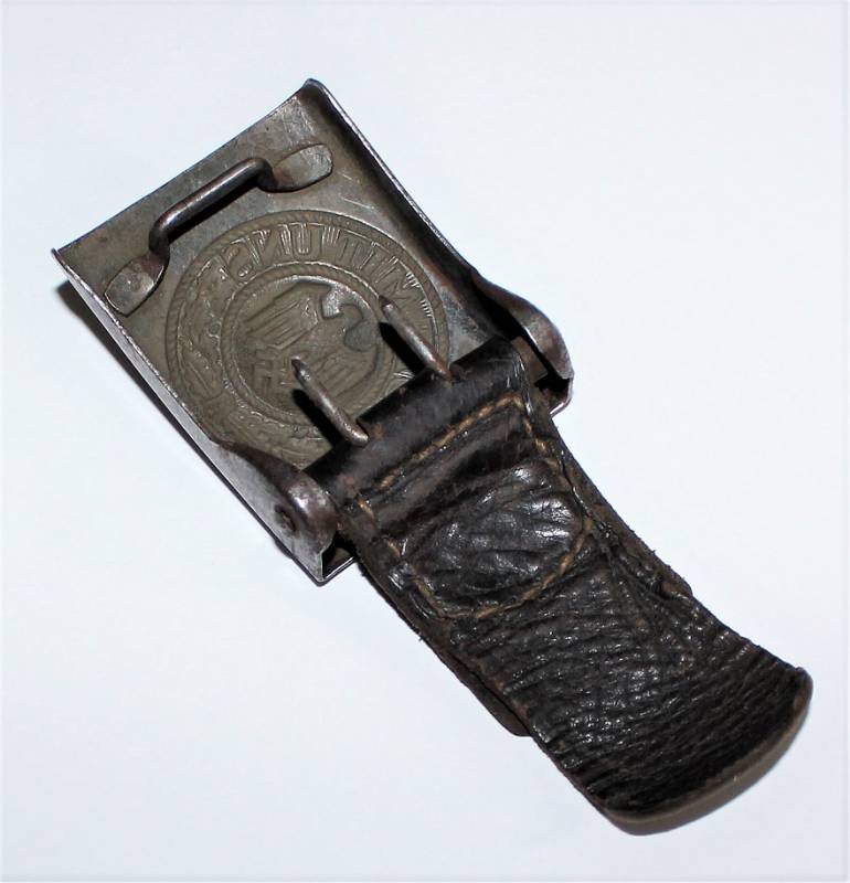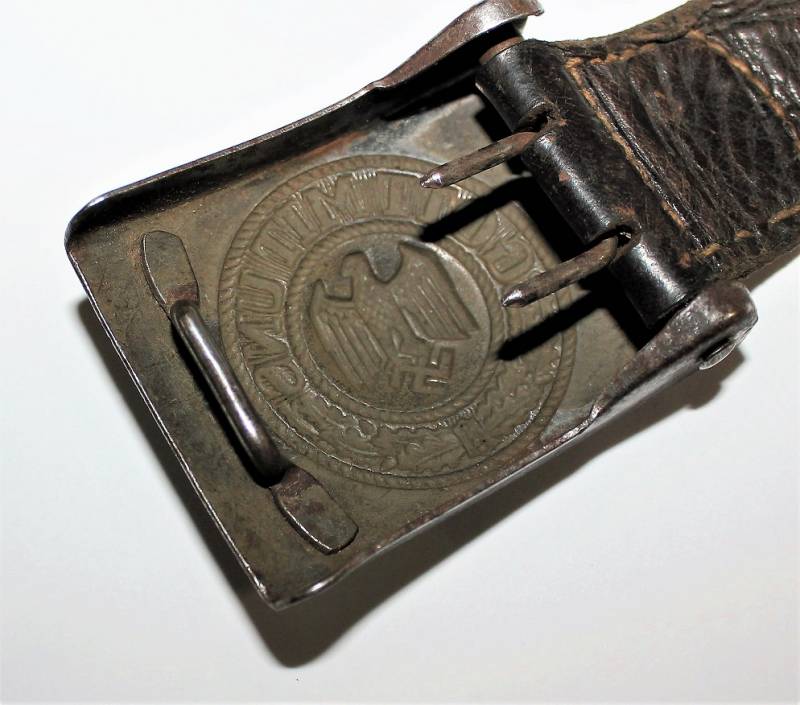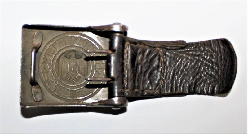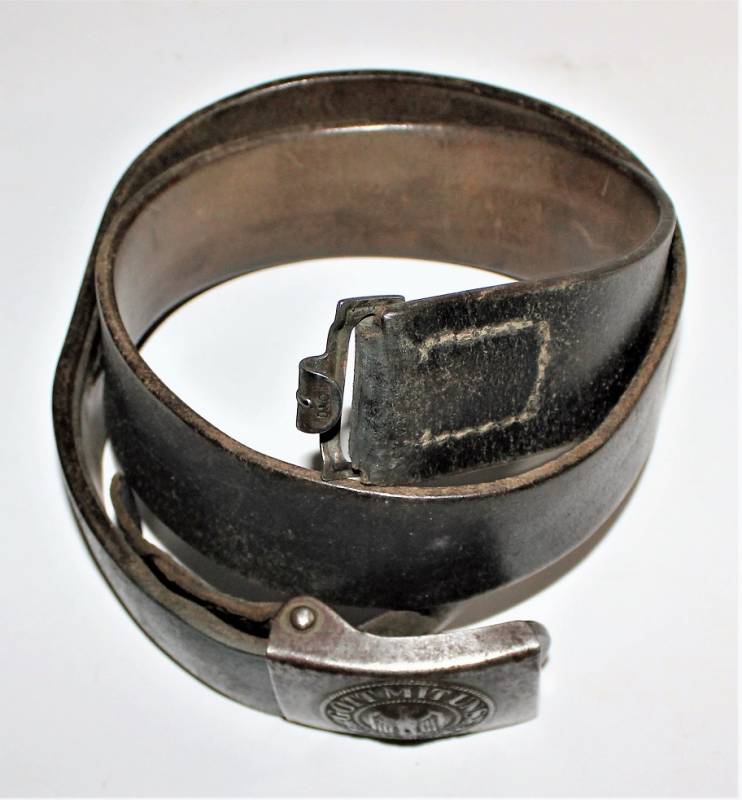 Cinturone e fibbia da Truppa della WH tutto in buone condizioni, fibbia in acciaio completa di passante in cuoio sul quale s´intravede la marcatura del nome fabbricante e della data, cinturone in cuoio nero in ottime condizioni lunghezza circa cm 105 non lesionato e con cuciture perfette.