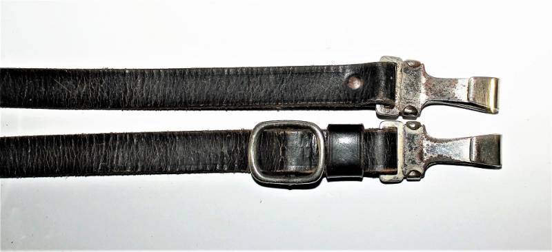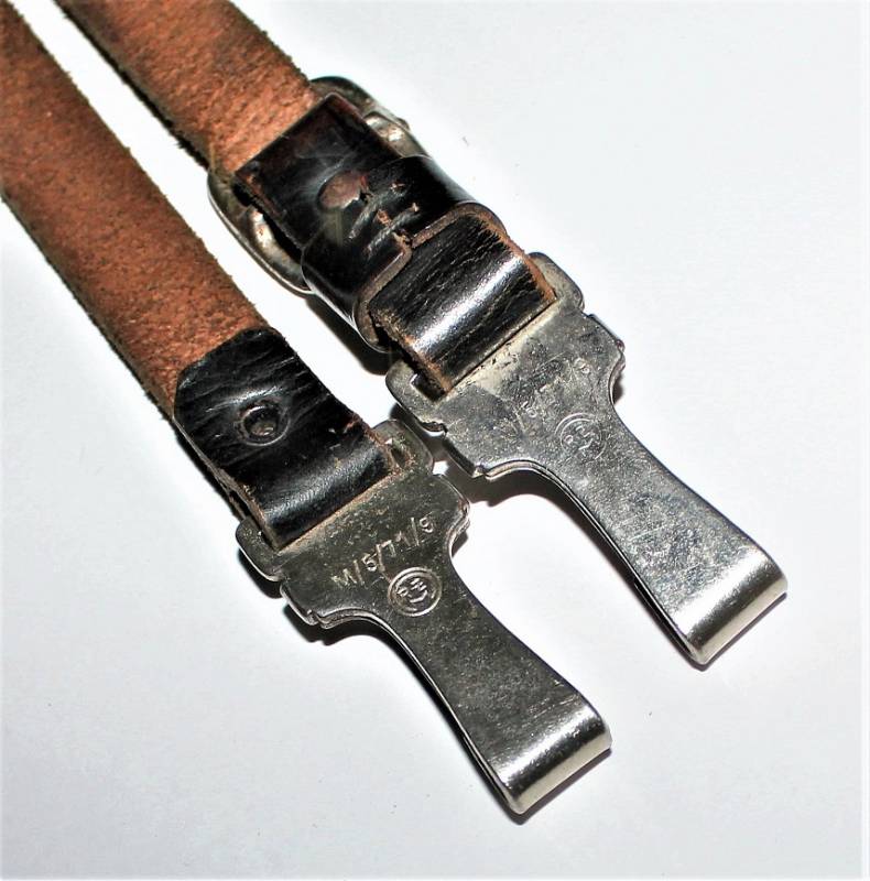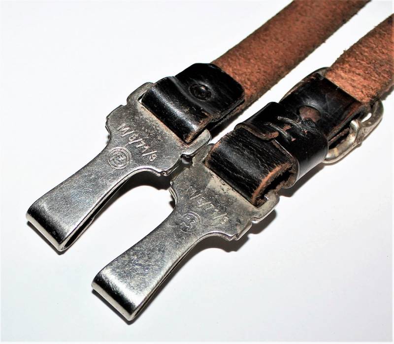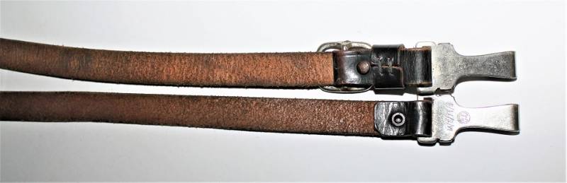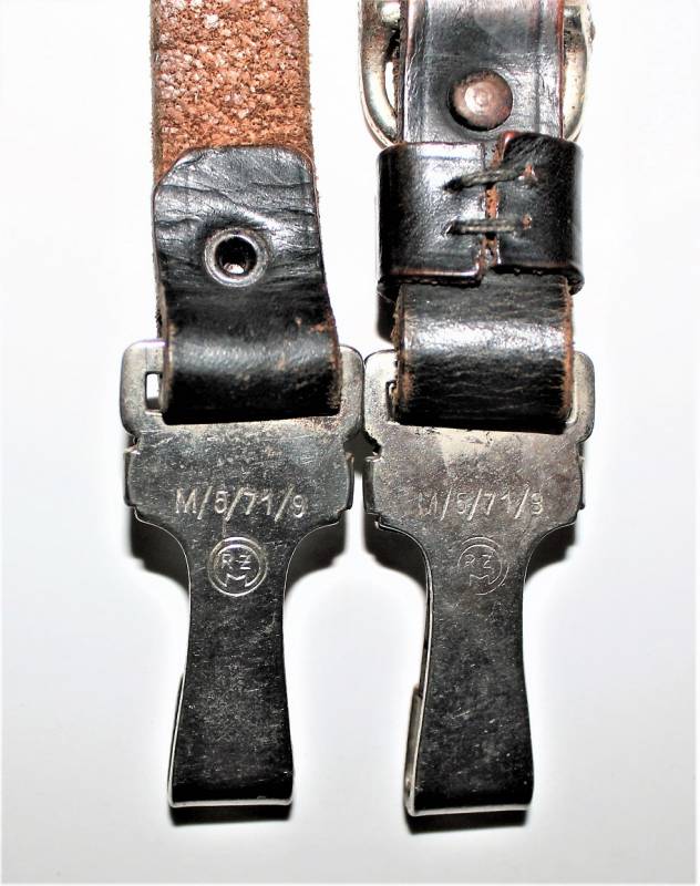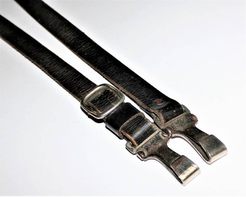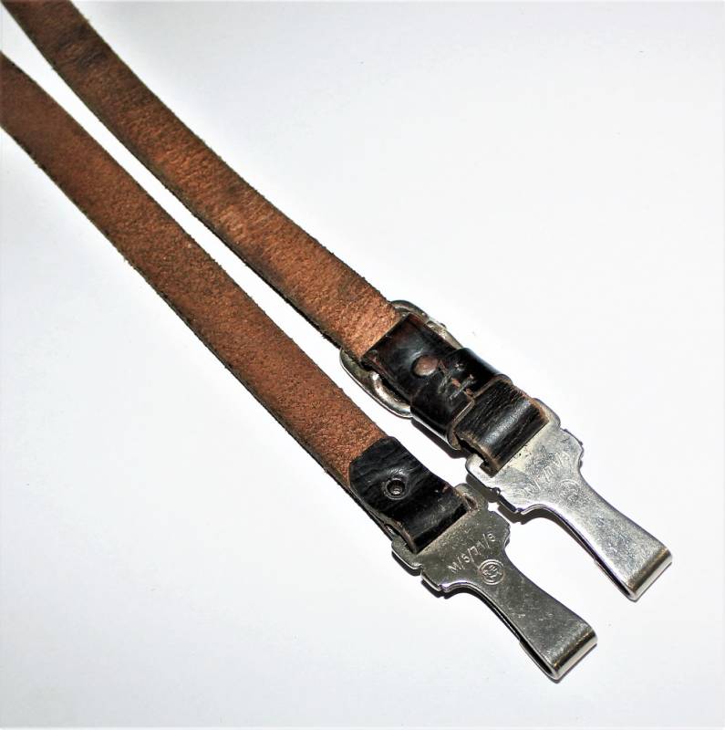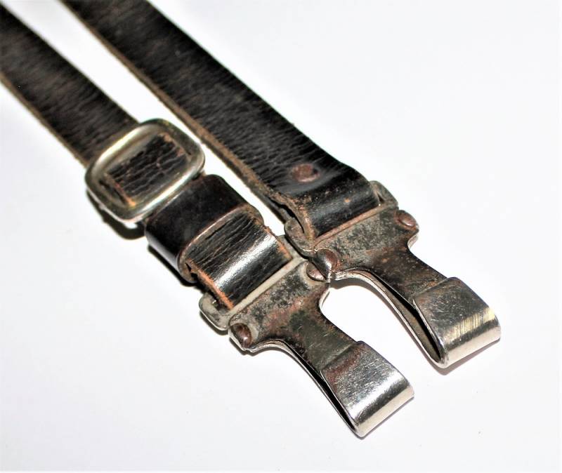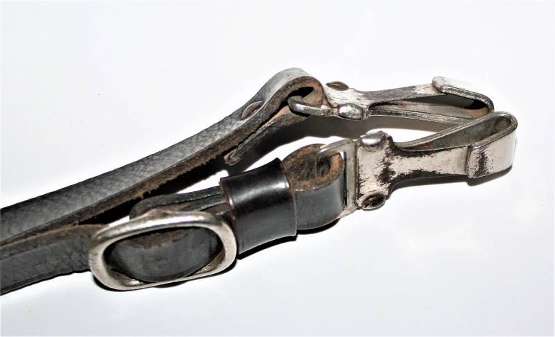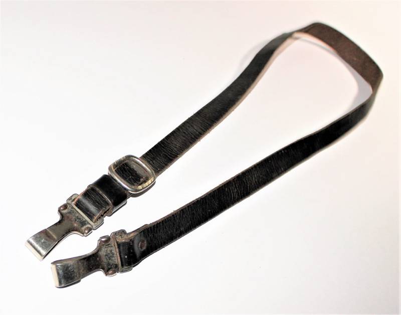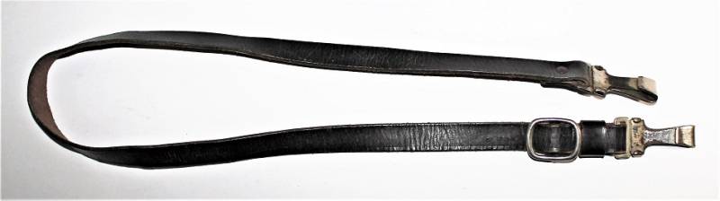 Tracolla per cinturone in pelle colorazione nera, condizioni ottime, pelle morbida e non lesionata, senza restauri o riparazioni, il tutto con leggera patina del tempo e dellŽuso, ganci in metallo marcati con RZM e numeri di codice.