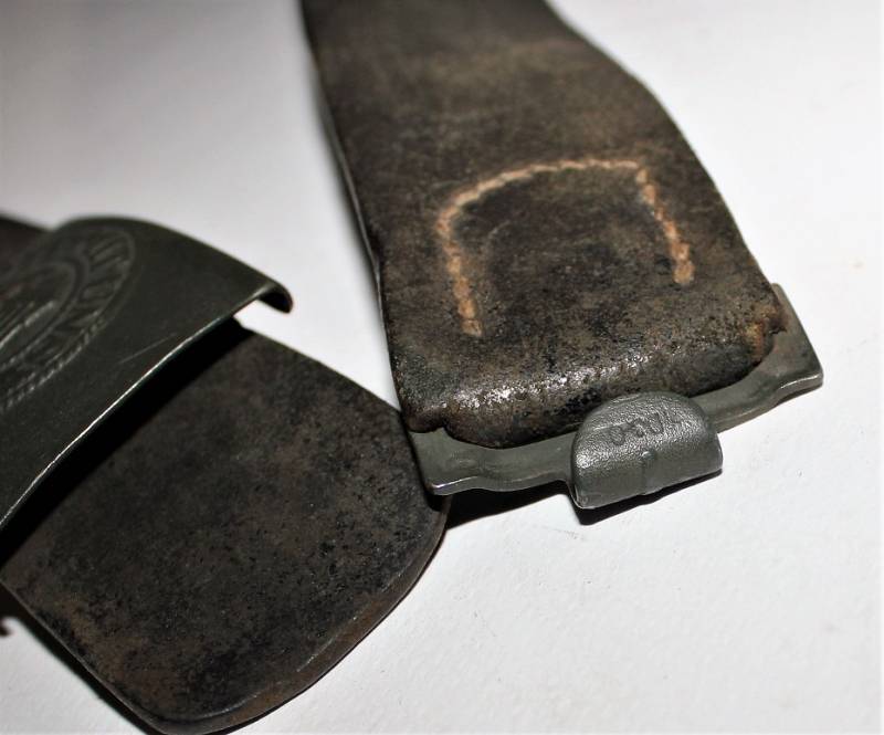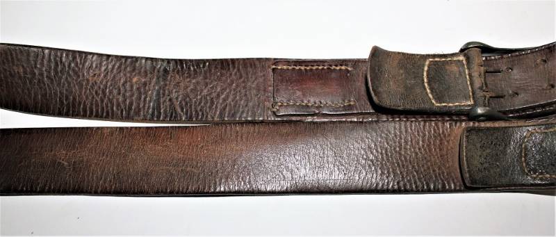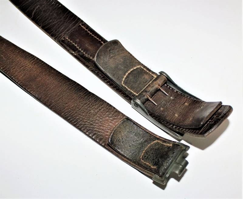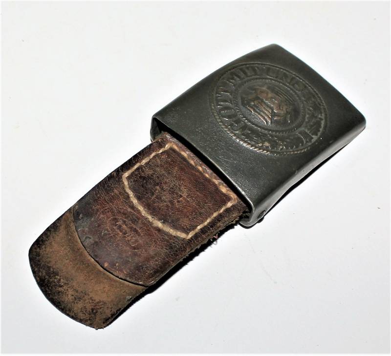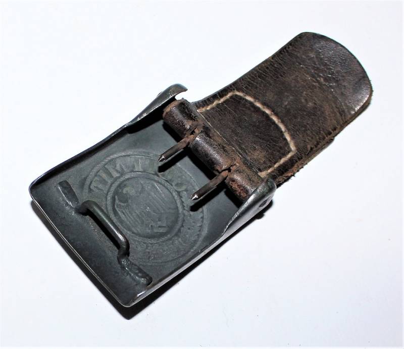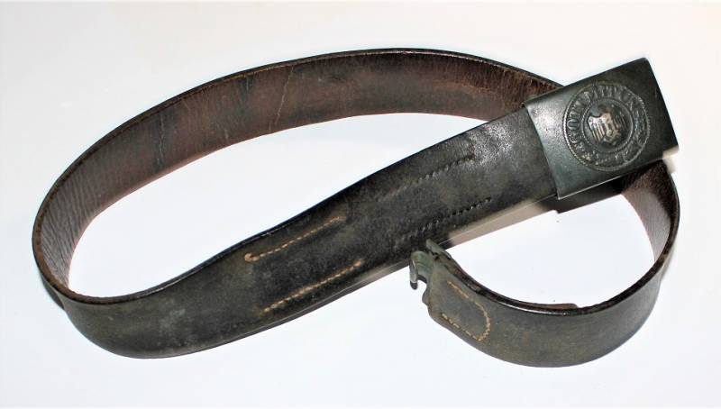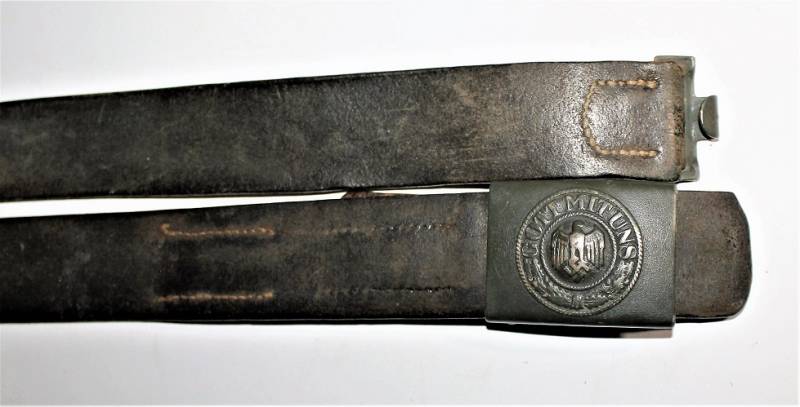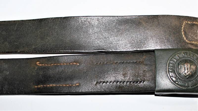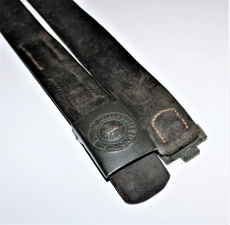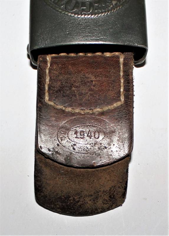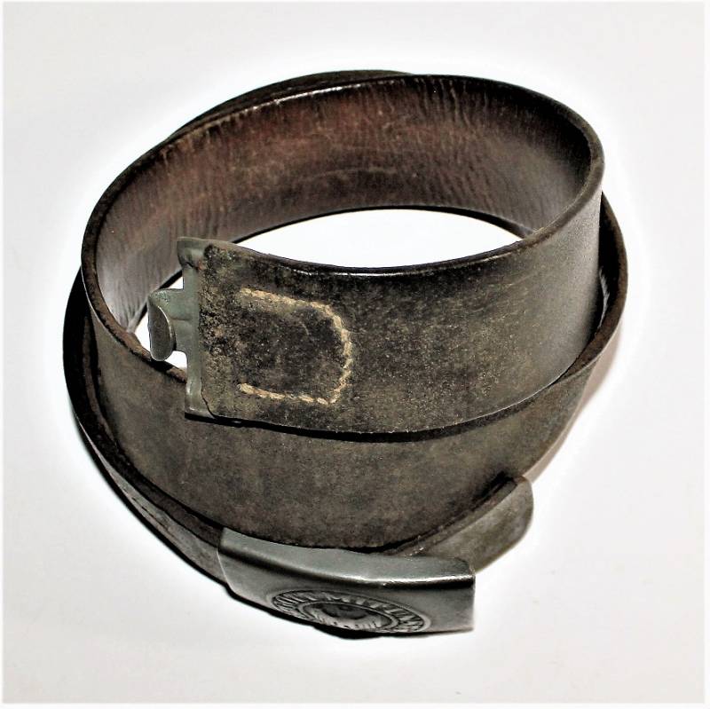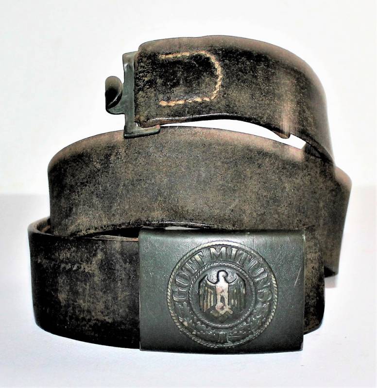Cinturone da truppa della WH completo di fibbia in acciaio in colorazione verde feldgrau, il tutto in buone condizioni, con patina del tempo e dell´uso, pelle ottima e morbida, cuciture perfette, senza restauri, fibbia marcata con codice fabbricante e completa di pattina anch´essa marcata con fabbricante e data 1940, anche il gancio della fibbia č marcato con il fabbricante. Lunghezza 90 cm. La patta in pelle della cintura č stata spostata in epoca.