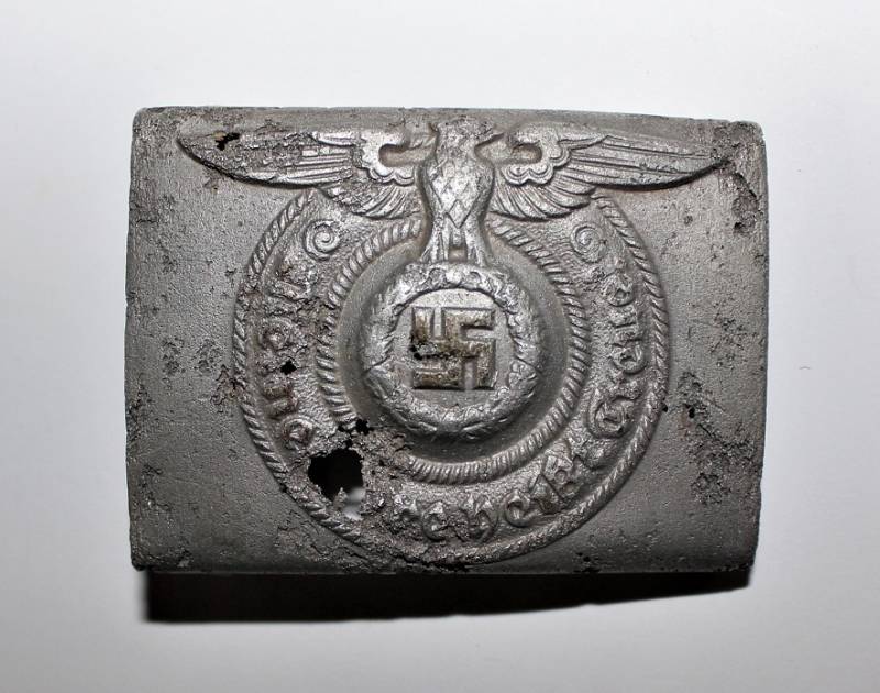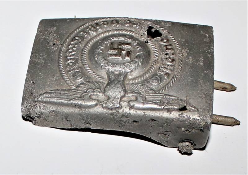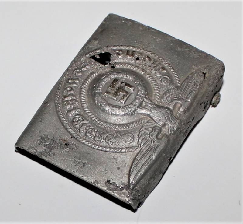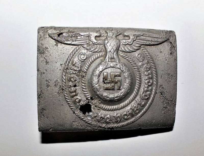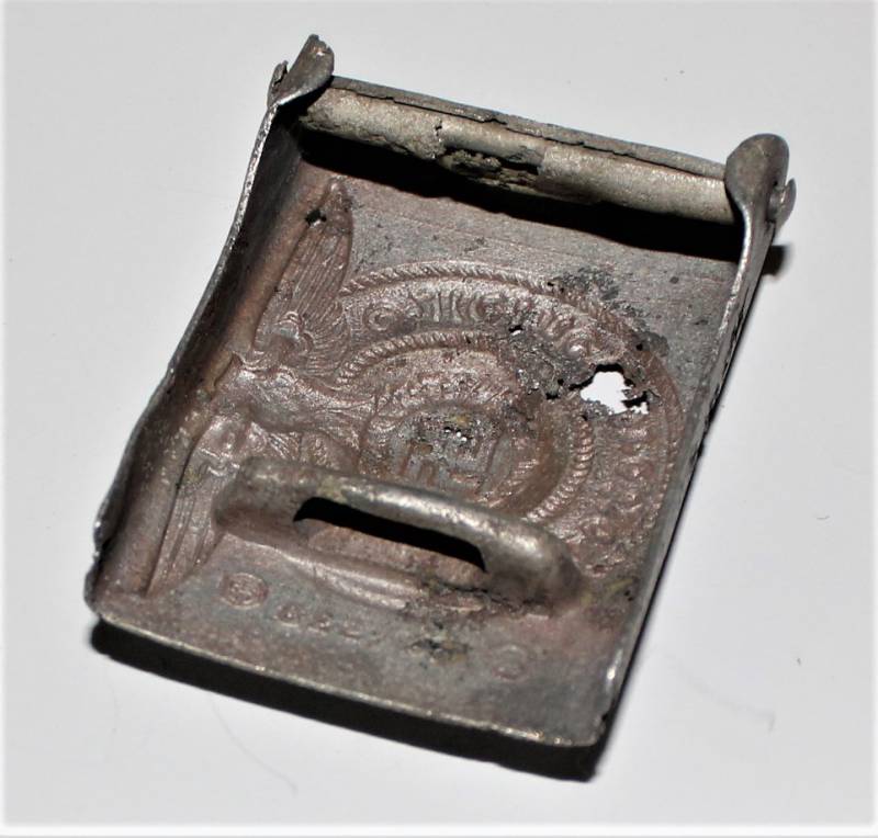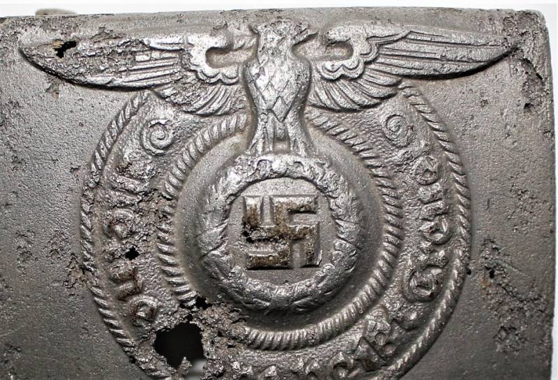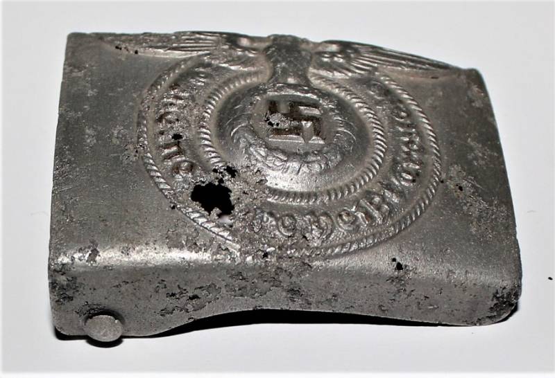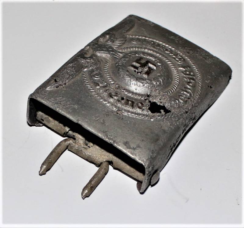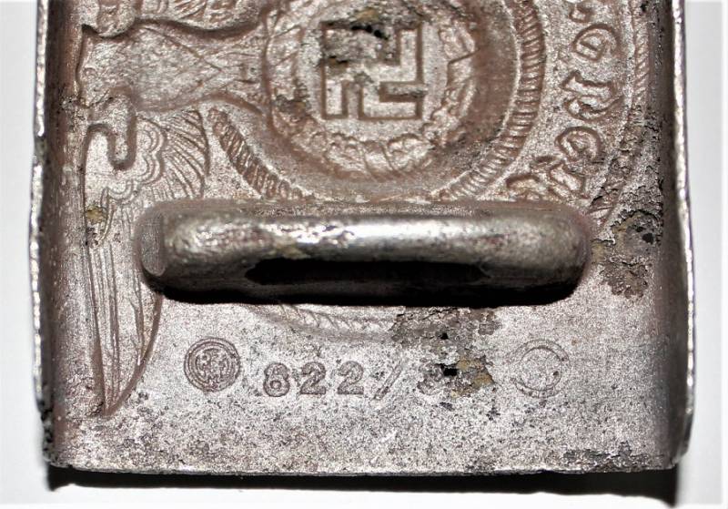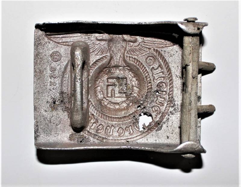 Fibbia da truppa della W.SS modello in alluminio, molto vissuta e ripulita, marcata con codici di accettazione RZM 822/37 SS. Originale 100% WWII periodo.