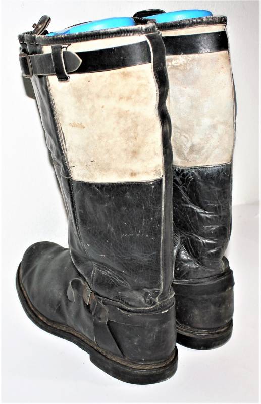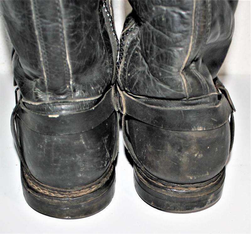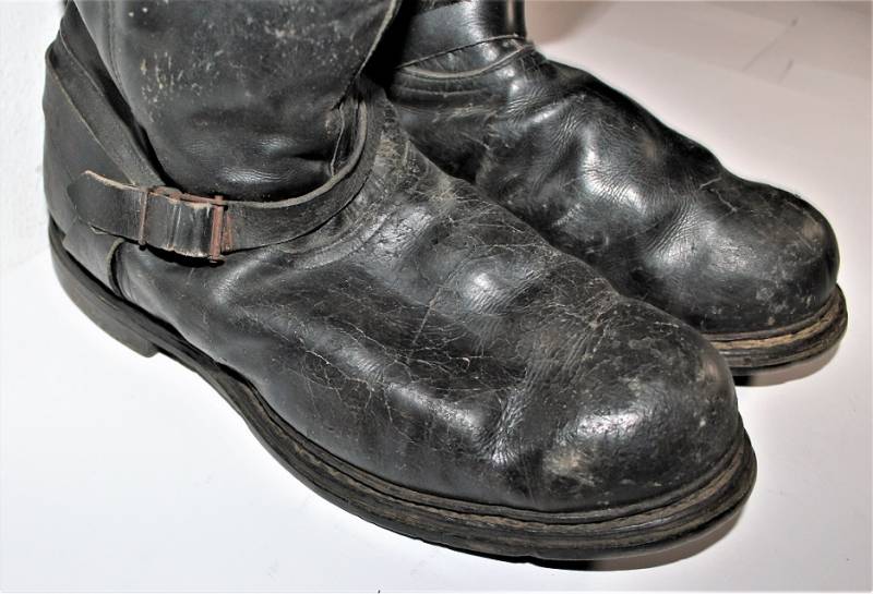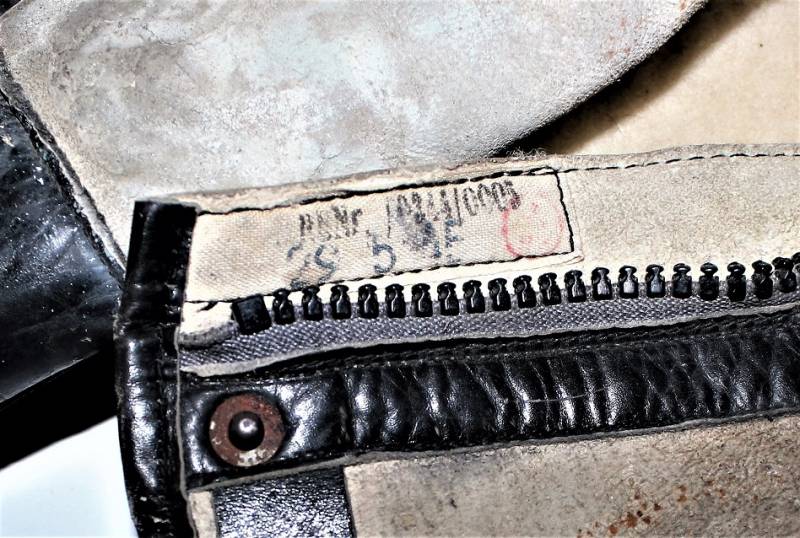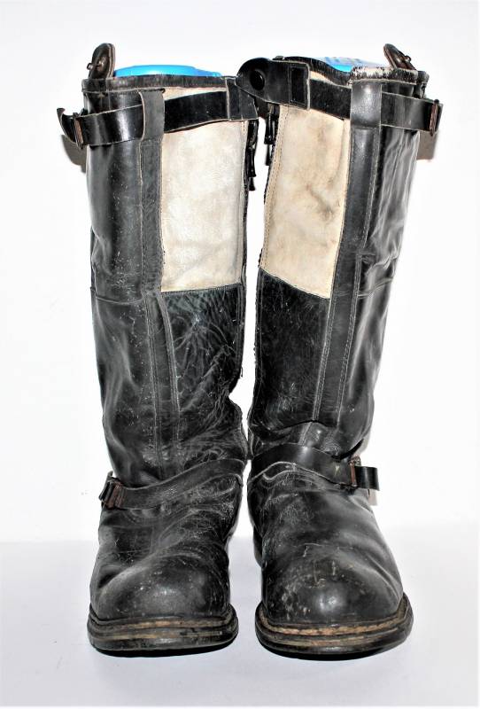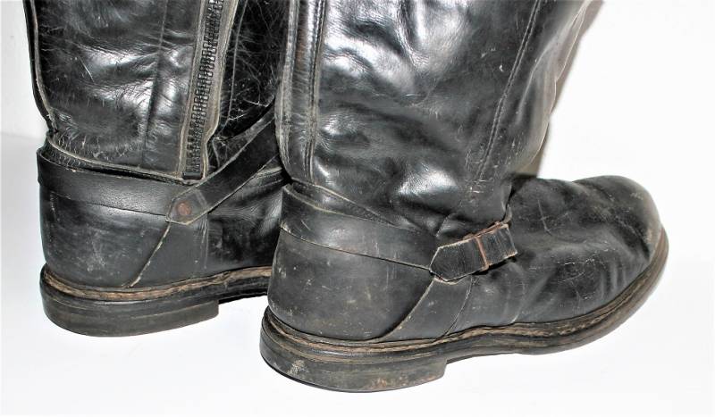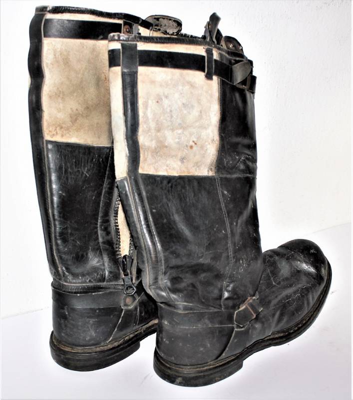Stivali da pilota della Luftwaffe in buone condizioni, nati in pelle nera con leggera patina del tempo e dellŽuso ma completi in ogni sua parte, non restaurati o riparati, pelle e cuciture buone e non lesionati, cerniere in materiale sintetico marcate e etichetta in stoffa con RBN n°... e data 25/05/1945. Taglia circa 44-45. Originali 100% WWII periodo.