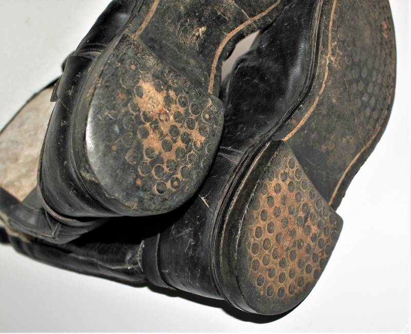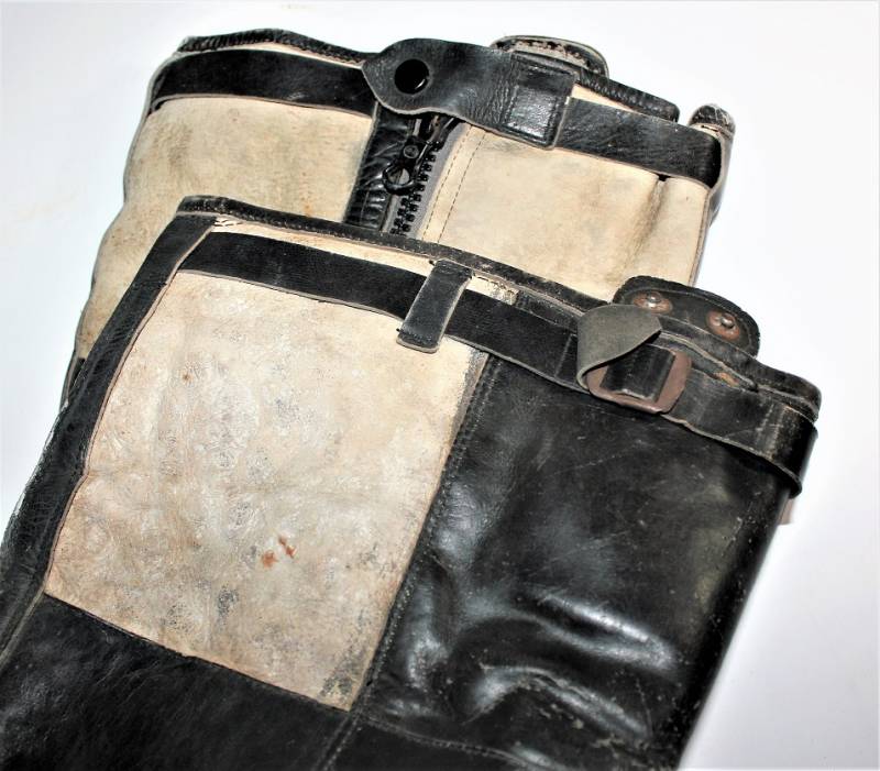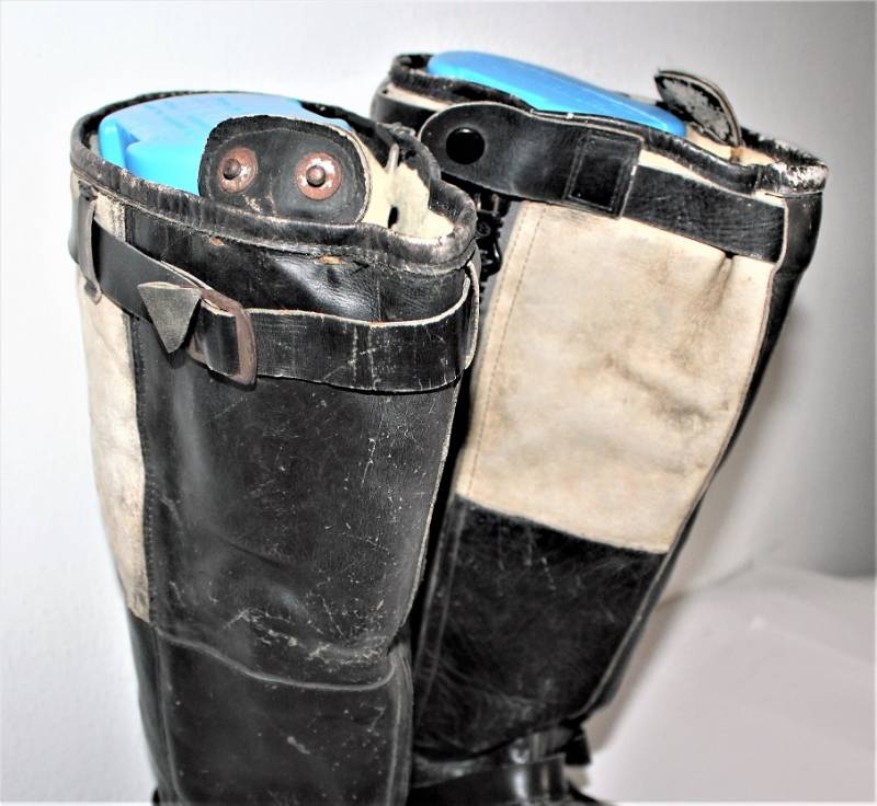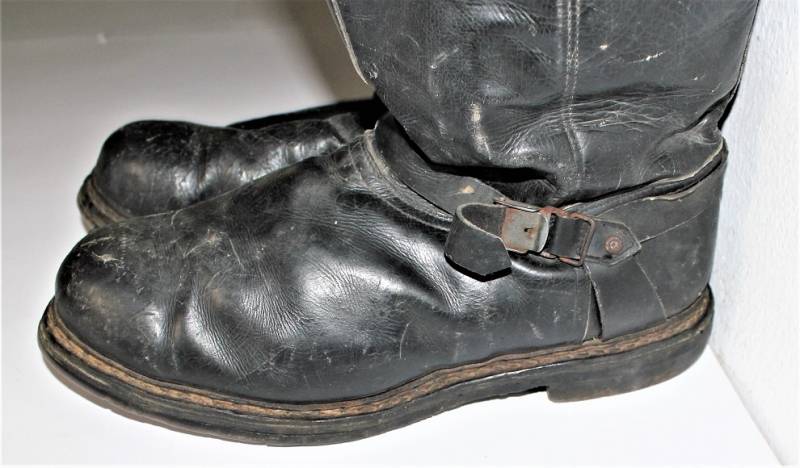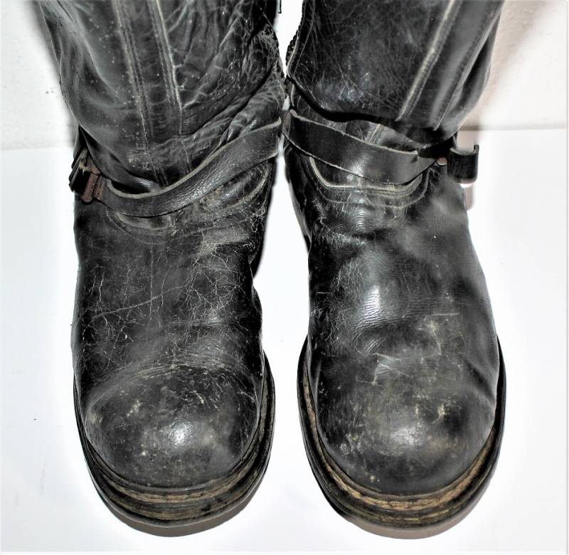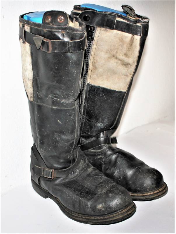Stivali da pilota della Luftwaffe in buone condizioni, nati in pelle nera con leggera patina del tempo e dellŽuso ma completi in ogni sua parte, non restaurati o riparati, pelle e cuciture buone e non lesionati, cerniere in materiale sintetico marcate e etichetta in stoffa con RBN n°... e data 25/05/1945. Taglia circa 44-45. Originali 100% WWII periodo.
