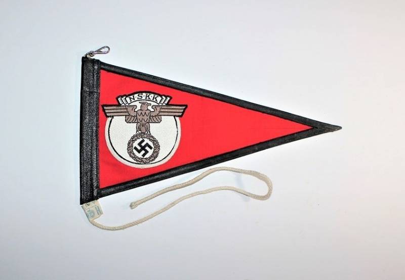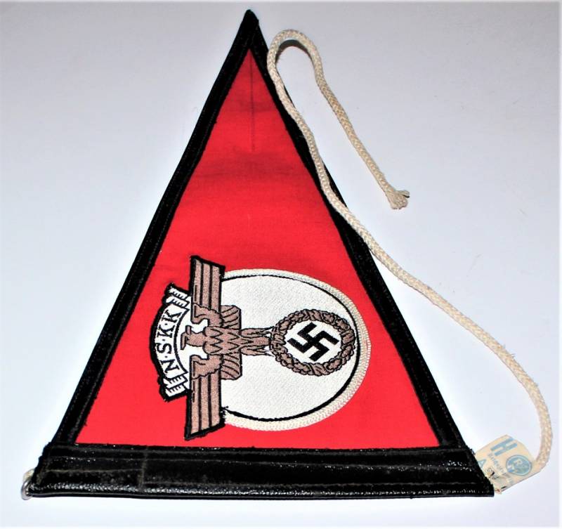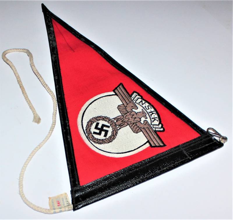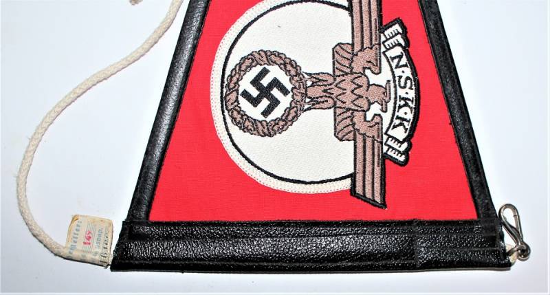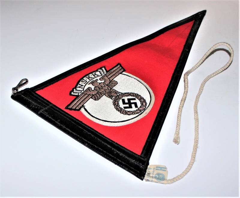 Bellissima bandierina per macchina per le NSKK in condizioni perfette pari al nuovo, mai usata, completa in ogni sua parte. Originale 100% WWII periodo.